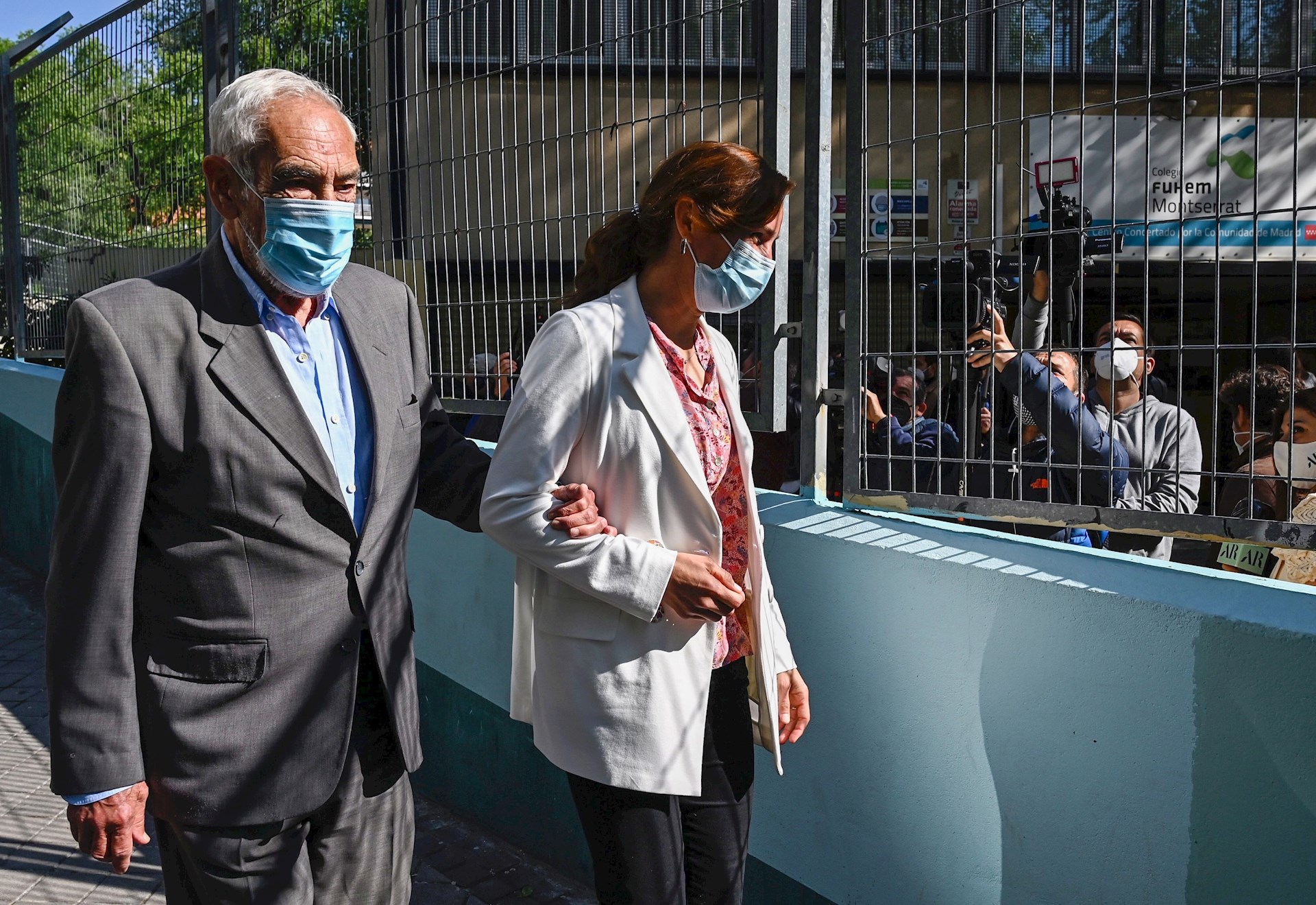 La candidata de Más Madrid, Mónica García, acompaña a su padre a votar.