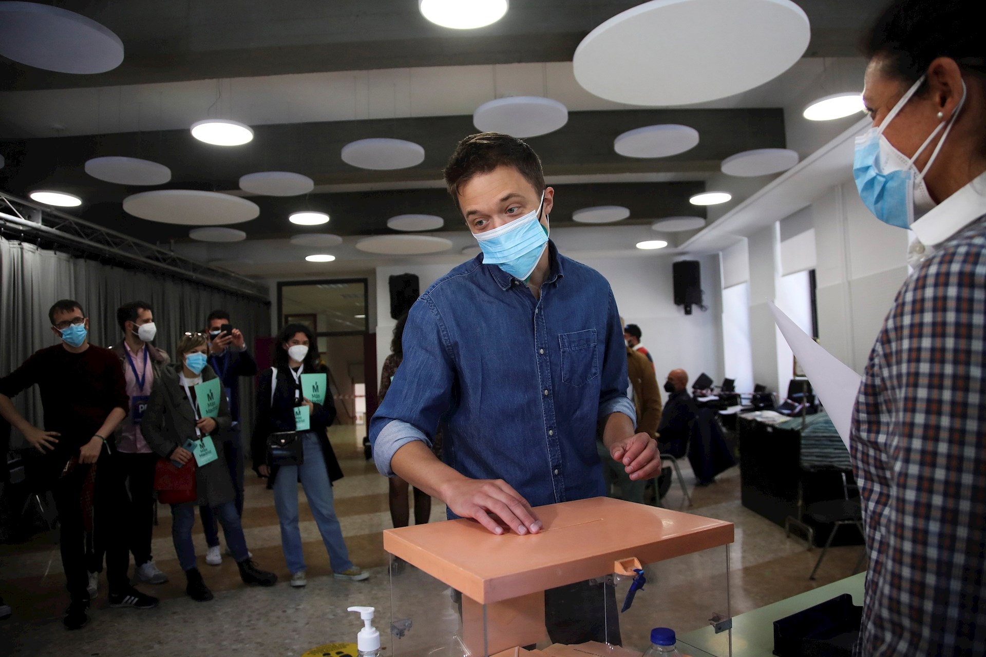 l portavoz de Más País en el Congreso, Íñigo Errejón, vota en colegio Santa María de Jesús para las elecciones autonómicas en Madrid de este martes.