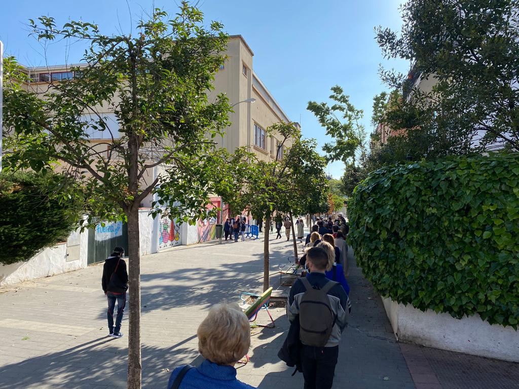 Una gran cola de votantes a la espera de poder entrar en su colegio electoral.