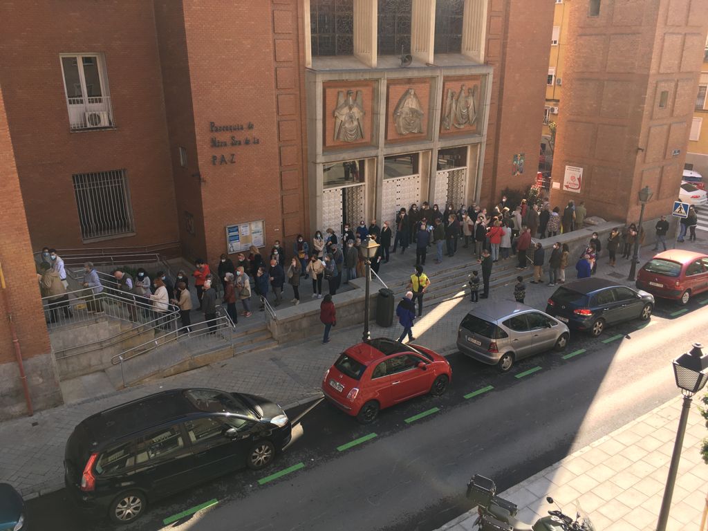 Votantes esperan para acceder al colegio La Inmacualada-Marillac en Madrid para ejercer su derecho al voto.