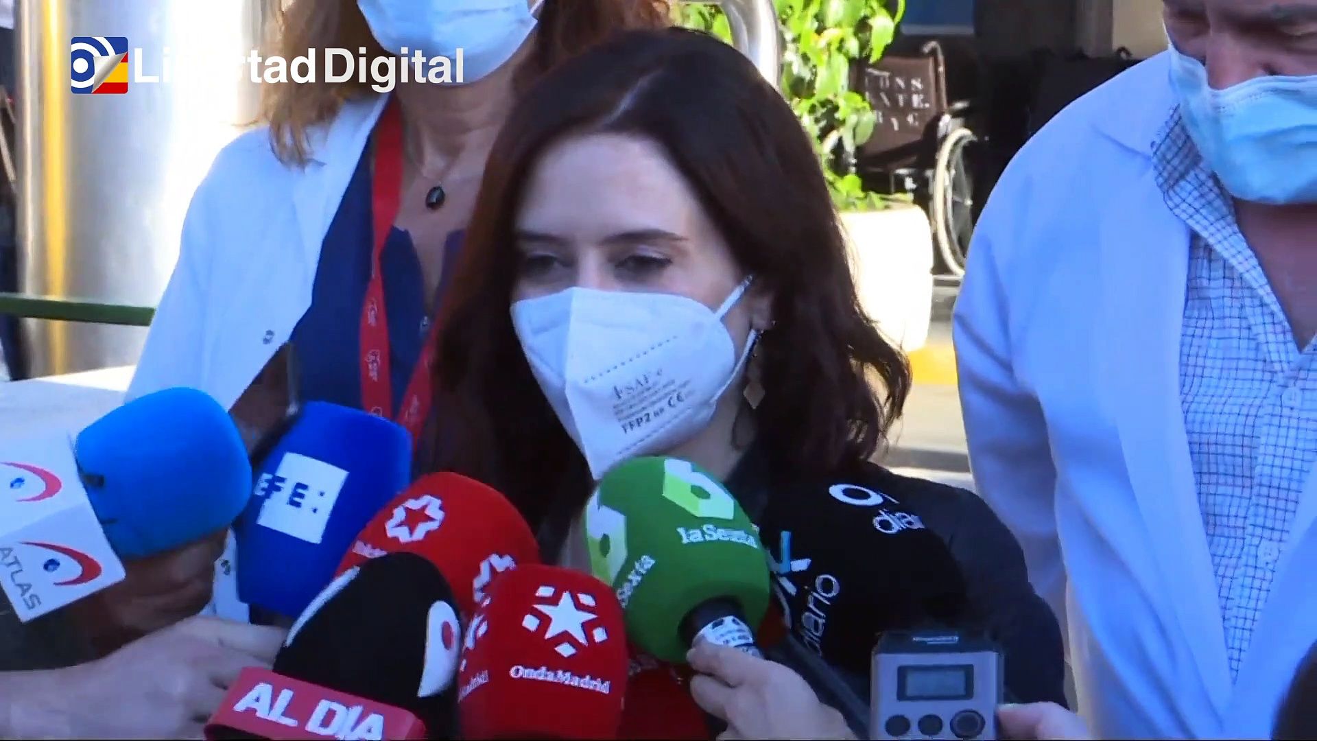 Isabel Díaz Ayuso ha asegurado, tras visitar a Ángel Gabilondo en el Hospital Ramón y Cajal, que el socialista se encuentra "bien, tranquilo", y que se encontraba mal antes de acudir a vacunarse.