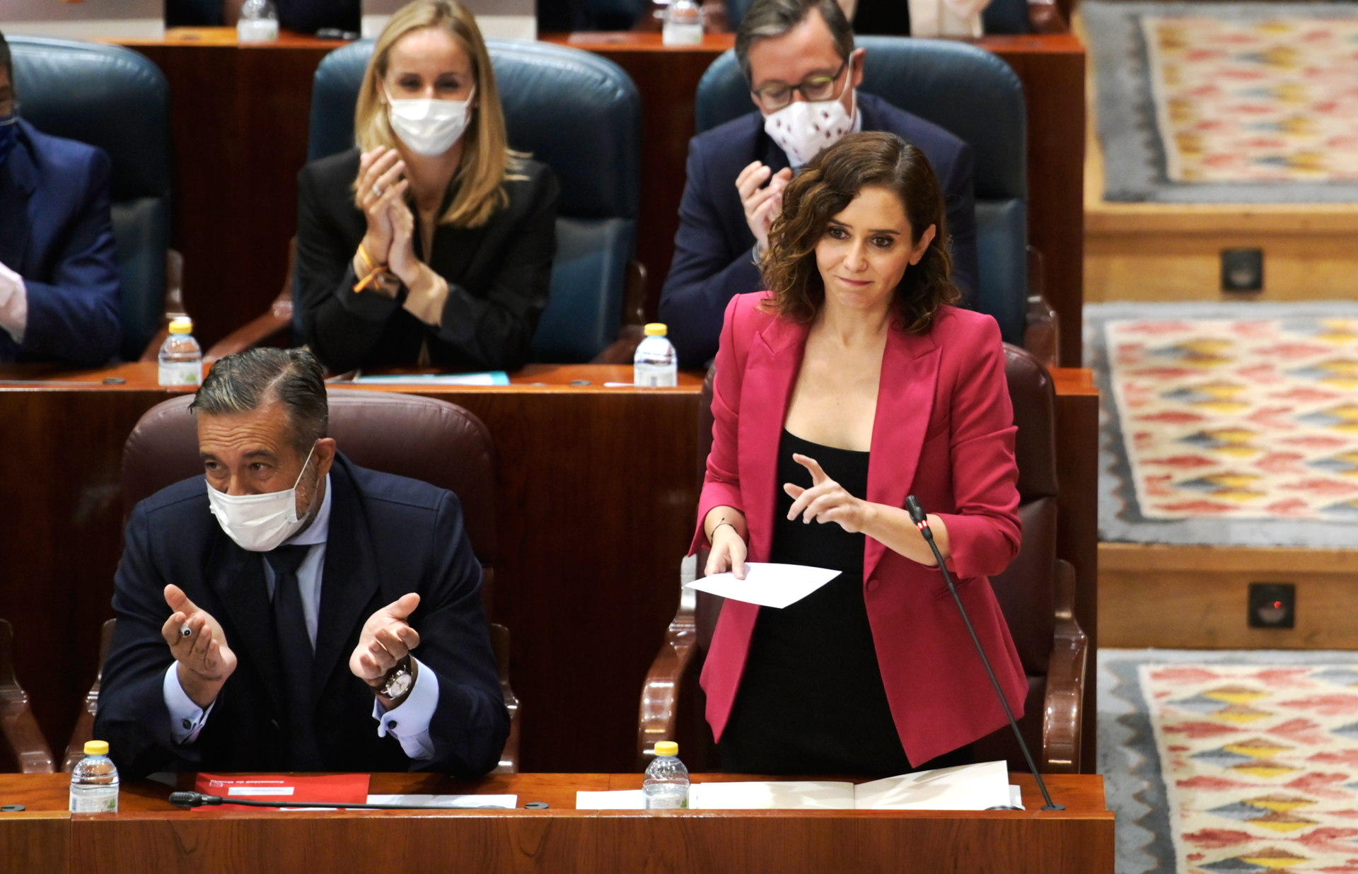 La presidenta de la Comunidad de Madrid, Isabel Díaz Ayuso, ha acusado este jueves al Grupo Parlamentario de Unidas Podemos de tener toda la bancada de diputados junta "más propiedades" que el portal de Idealista.