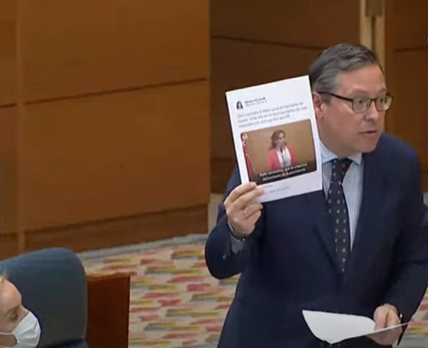 Serrano preguntó: "¿Se ha disculpado (la portavoz de Más Madrid)? No". Y a continuación mostró el comentario de García en Twitter. "Mire, he encontrado un tuit que se le perdió, lo que no soy capaz de encontrar es su vergüenza", le espetó.