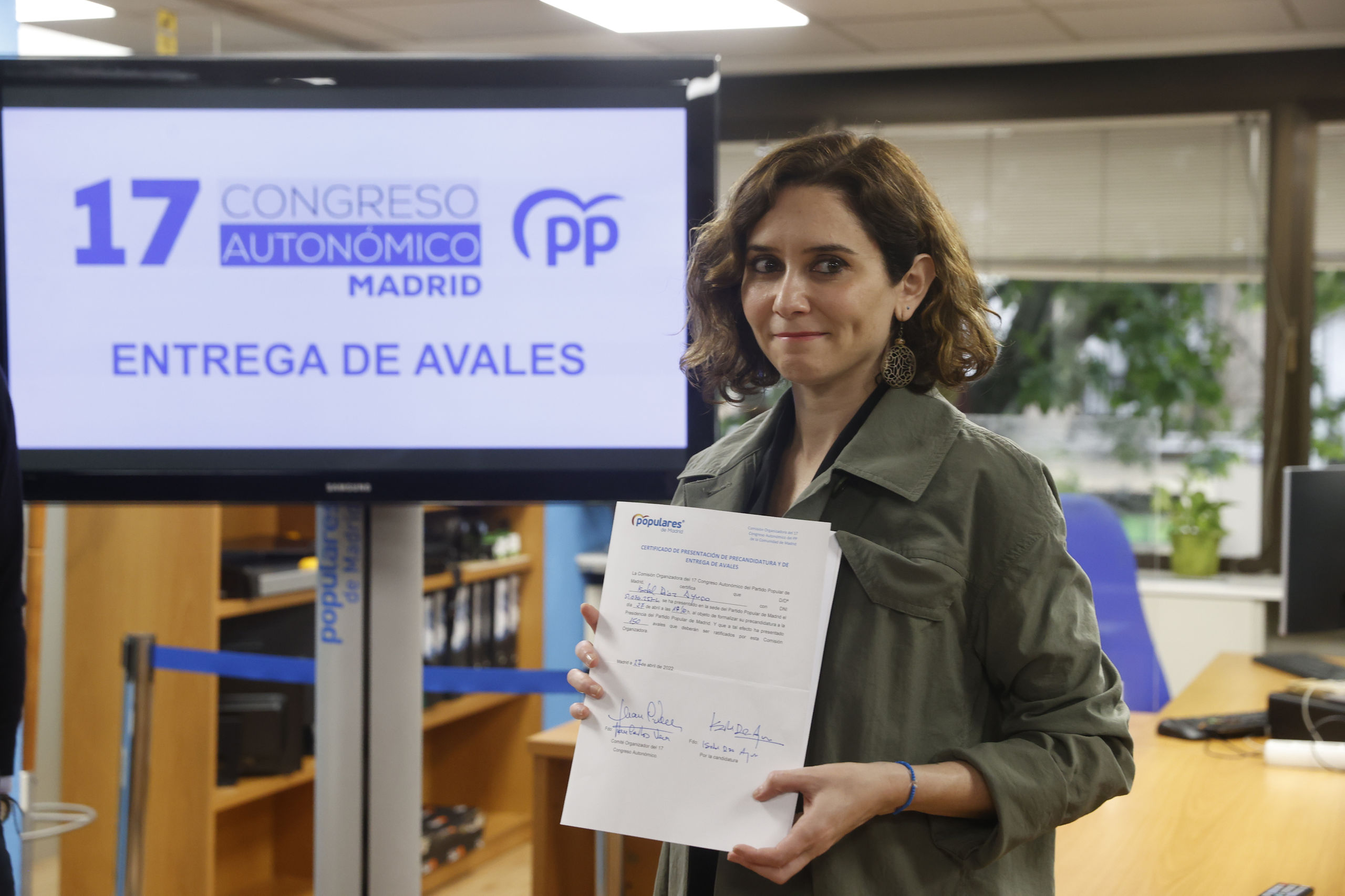Isabel Díaz Ayuso ya es candidata a presidir el PP de Madrid y la popular, además, ha logrado un número muy alto de avales a su candidatura al 17 Congreso del partido en la región, que se celebrará los próximos 20 y 21 de mayo.