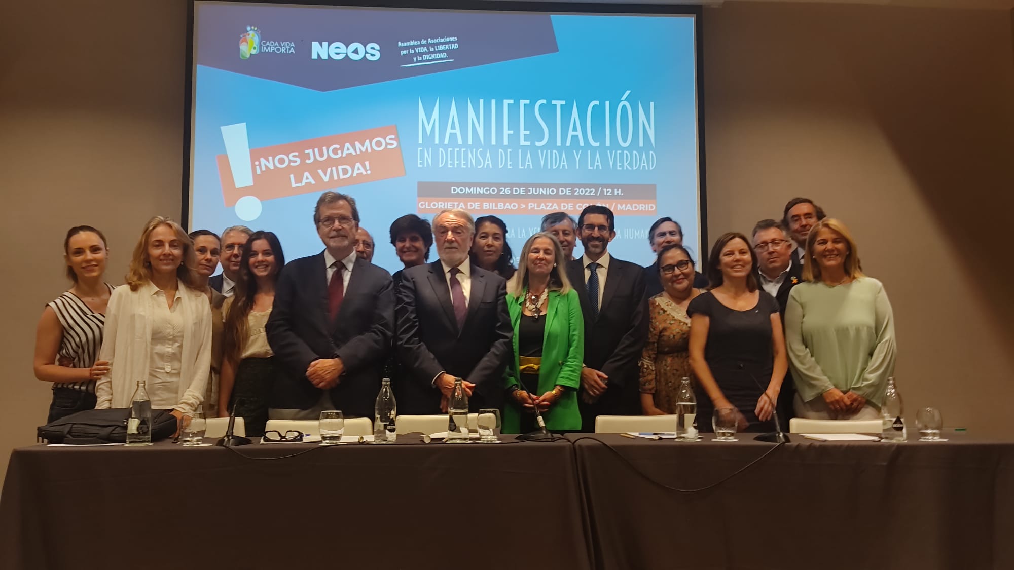 A la presentación de la convocatoria han acudido Jaime Mayor Oreja, miembro de NEOS; Carmen Fernández de la Cigoña, directora del Instituto CEU de Estudios de la Familia y miembro de la ACdP; Josep Miró, coordinador de la Asamblea de Asociaciones por la Vida, la Libertad y la Dignidad; Juan Carlos Corvera, presidente de Educatio Servanda; y María San Gil, vicepresidenta de la Fundación Villacisneros y miembro de NEOS.