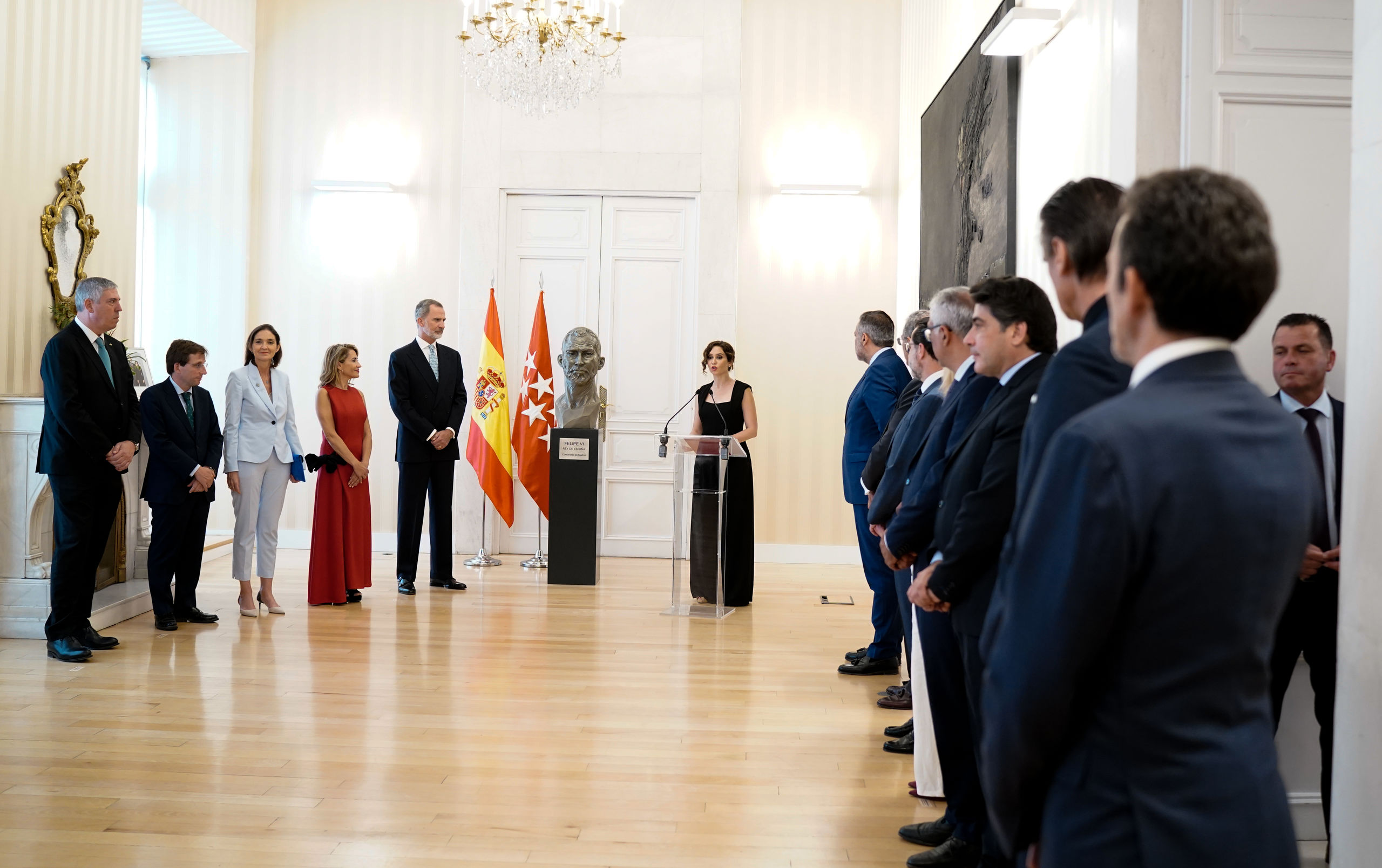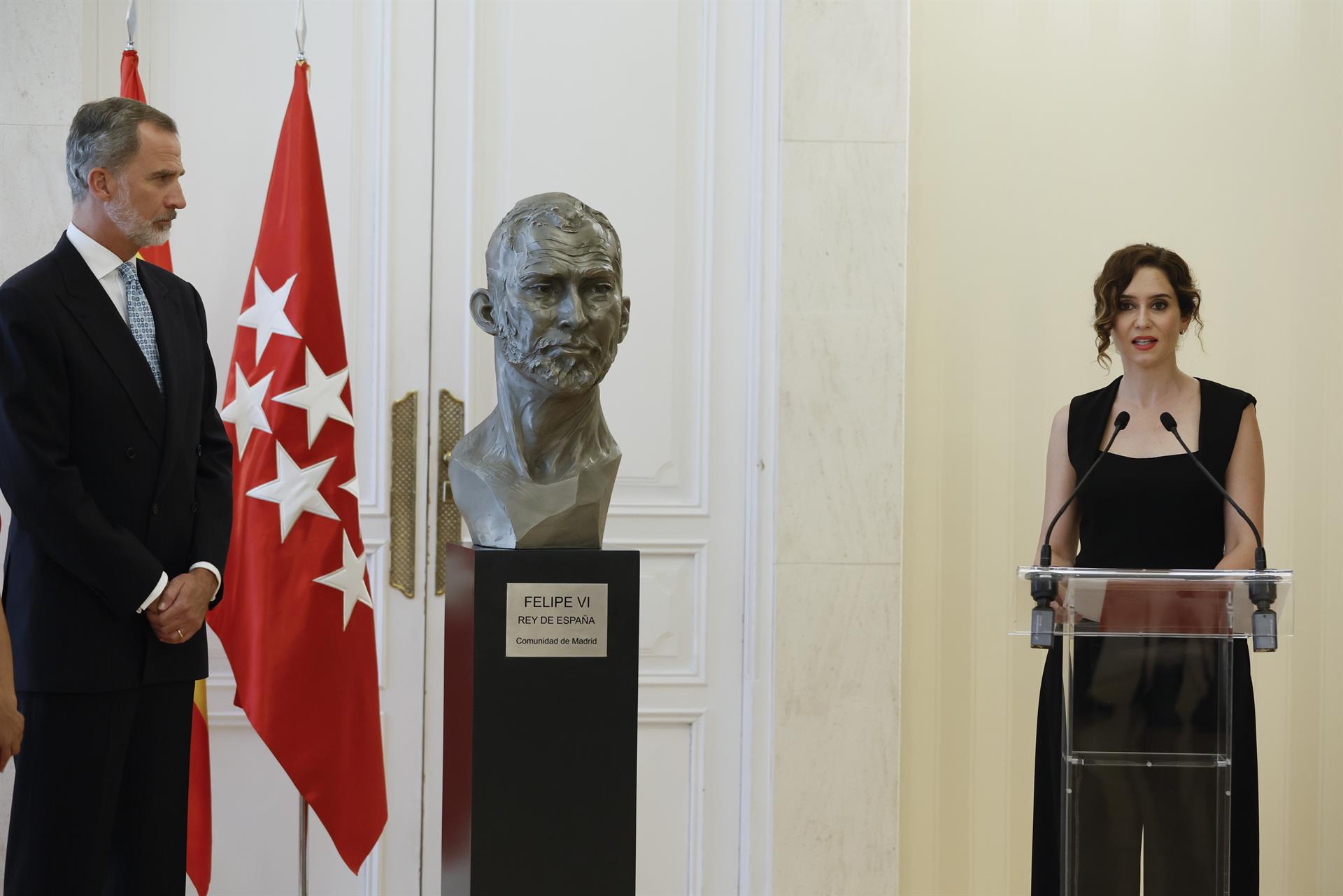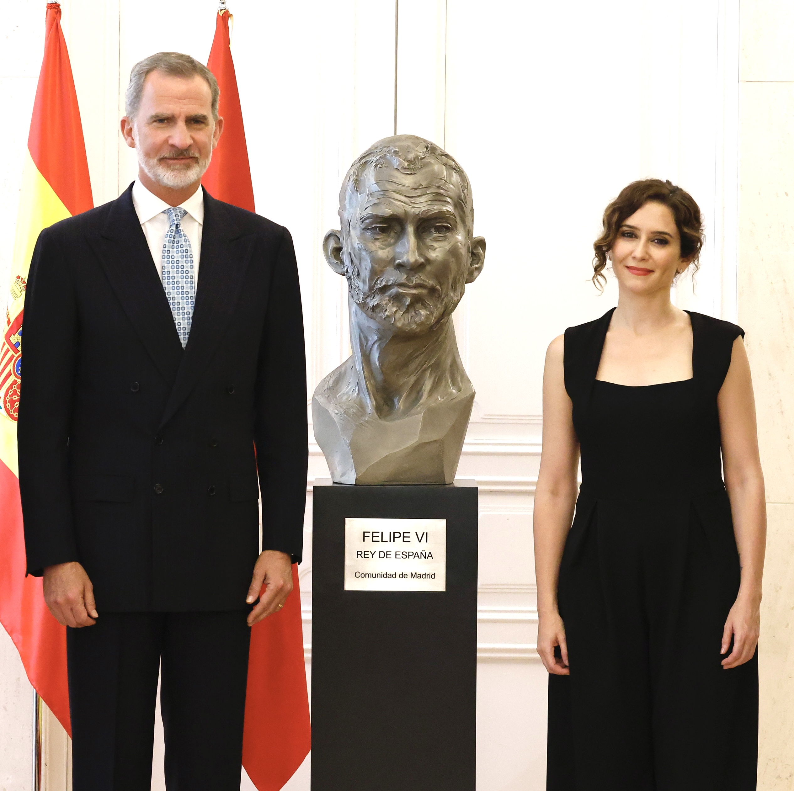 El busto estará ubicado en la sede de la Comunidad de Madrid que “es también la segunda casa de don Felipe VI y de la Institución que encarna: la del Rey de todos los españoles”, ha añadido la presidenta, quien ha recordado que en la Real Casa de Correos ya hay una escultura del Rey Emérito don Juan Carlos, obra también realizada por Ochoa.
