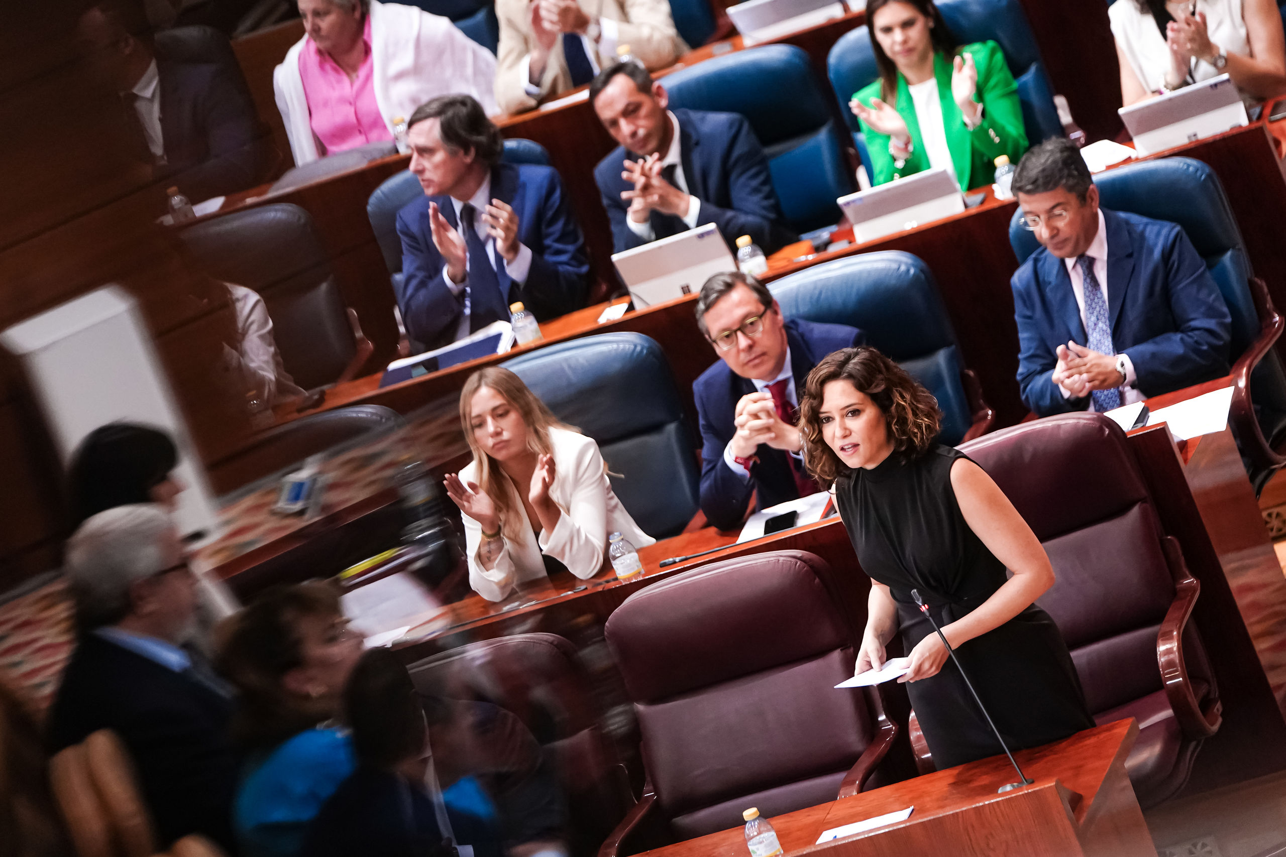 "Ustedes no tienen derecho a comparar a la presidenta de la Comunidad Madrid con los nazis, como hizo en el último pleno o a culparme de ningún asesinato, que también lo han intentado hacer durante estos días, lo que se demuestra que o de la señora Montero no vale para nada".