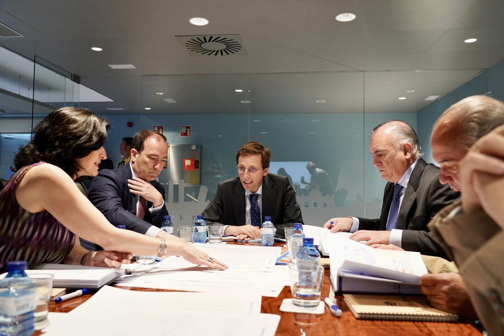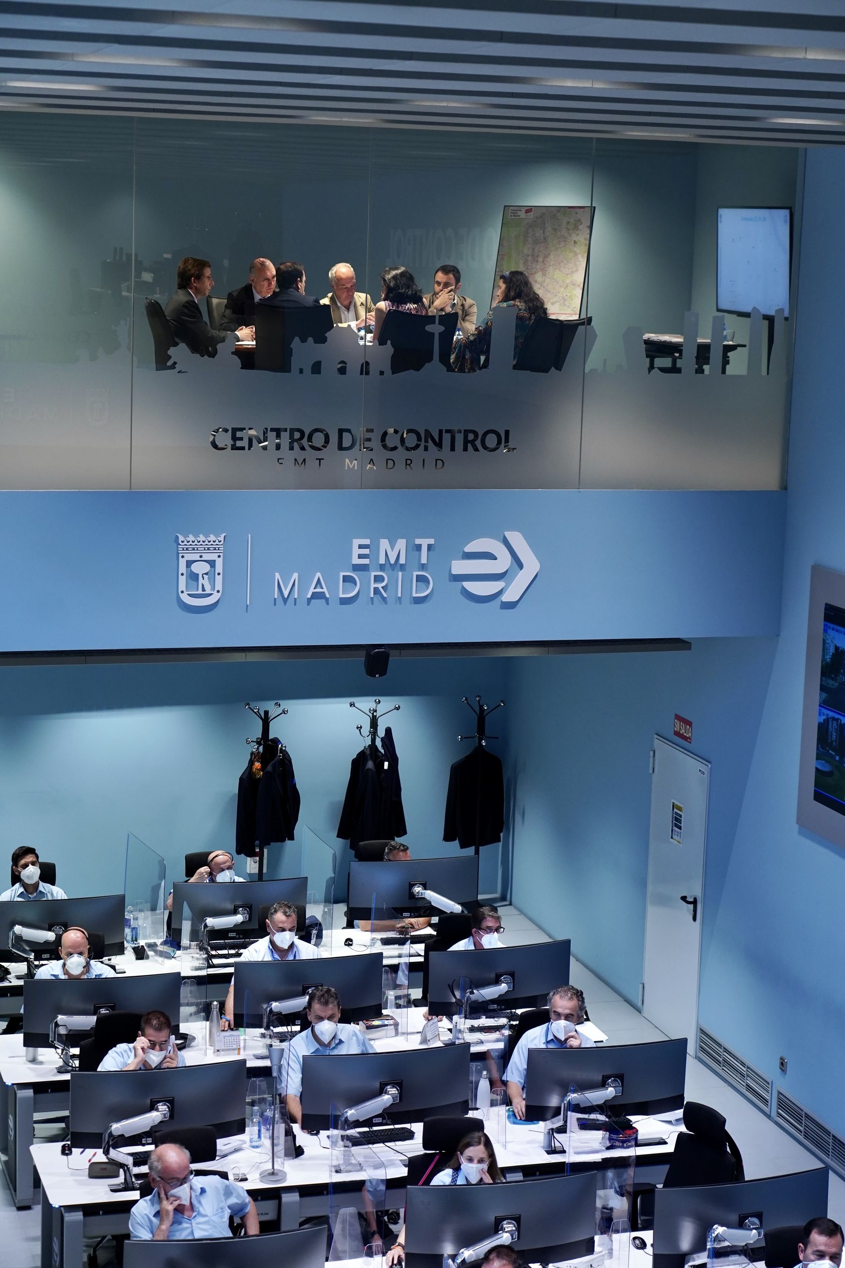 El alcalde de Madrid visitó este lunes por la mañana el Centro de Control de la Empresa Municipal de Transportes de Madrid (EMT), donde presentó las medidas especiales de movilidad que el Ayuntamiento va a adoptar con motivo de la celebración de la cumbre de la OTAN en la ciudad.