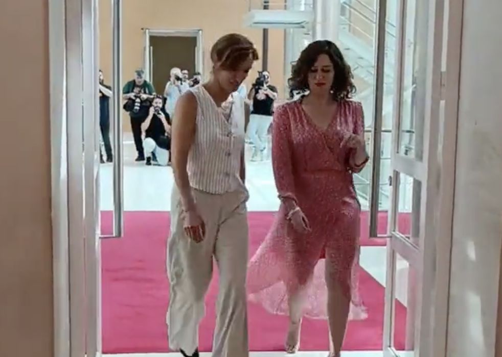 Mientras Ayuso esperó la llegada de García para que entraran juntas en la sala de reunión, cuando esta llegó aceleró el paso para entrar ella antes y dejó a Ayuso con la palabra en la boca.