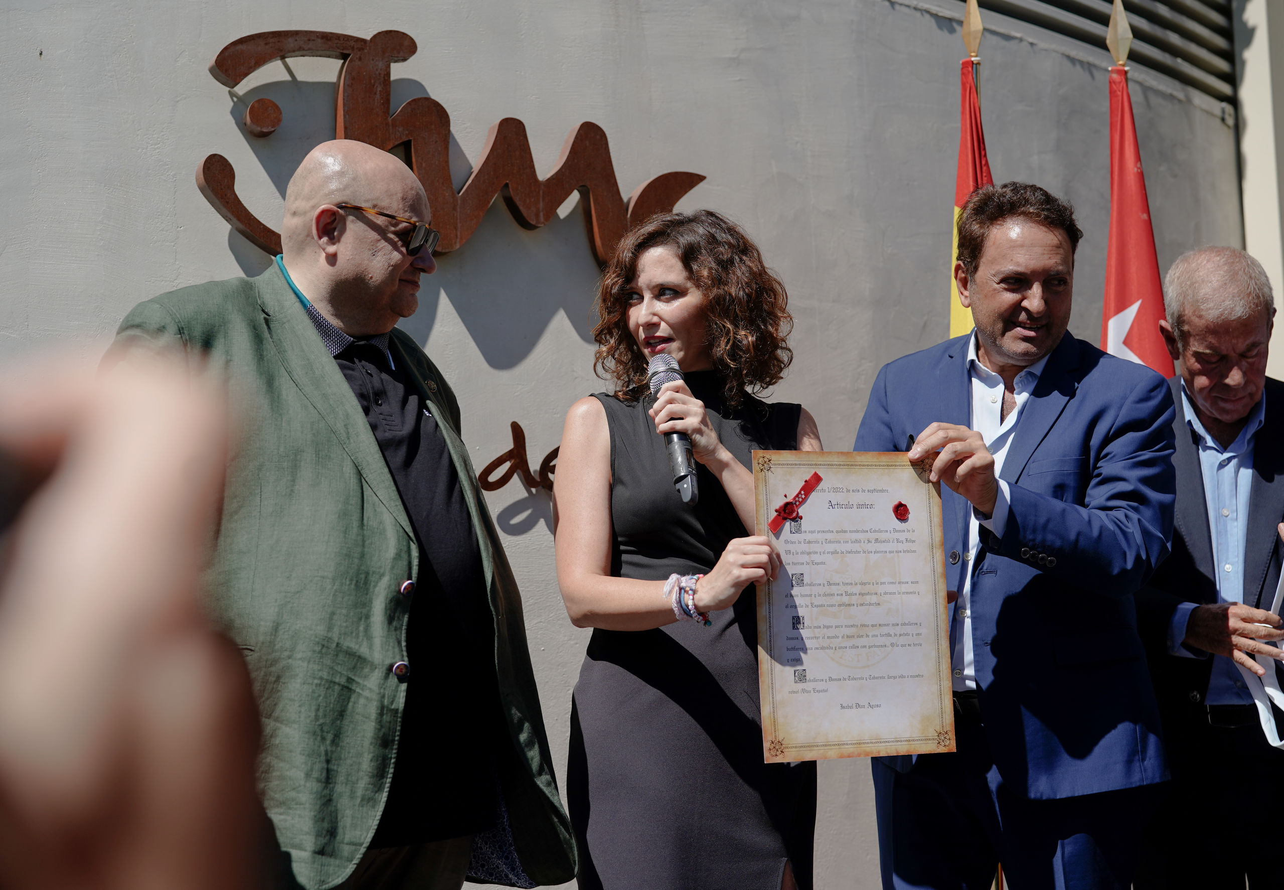 "Estimados miembros de la República Coronada de Tabarnia, como buena tabernaria, acepto con gusto vuestro ofrecimiento para ser presidenta de Tabarnia en Madrid. Con tanto ruido político, enfrentamiento y análisis sesudo sobre política, geopolítica, economía... y hasta sobre lo que debemos comer, se agradece un evento lúdico e interesante como este, con una buena caña y una buena butifarra", ha manifestado la presidenta al inicio de su intervención.