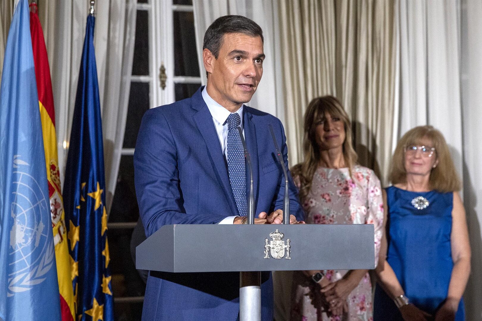 Durante su intervención en la residencia del embajador de España se refirió a la guerra que Rusia declaró a Ucrania hace ya siete meses y acusó a este país de "tratar de volar por los aires el orden mundial". El presidente del Gobierno afirmó que Vladimir Putin "no se va a salir con la suya", a la vez que lamentó que "las crisis se superponen: no acabamos de salir de una y ya estamos en otra", en referencia al Covid-19 y a la invasión de Ucrania.