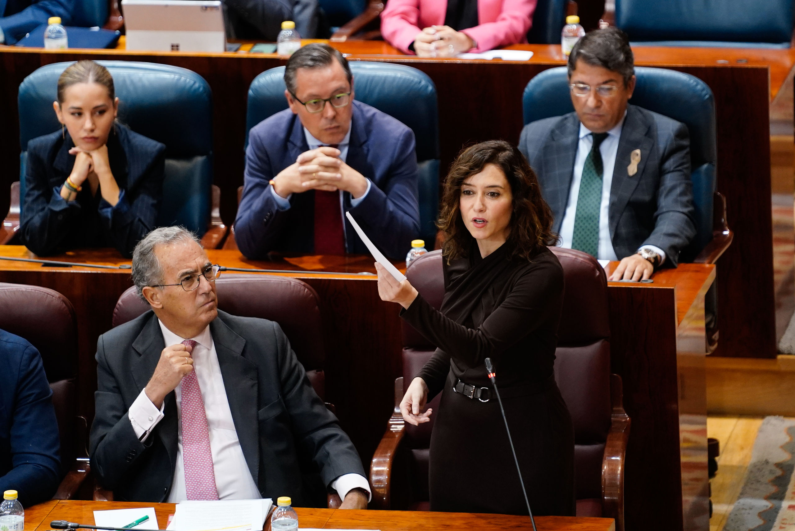 Como viene siendo habitual, uno de los rifirrafes más fuertes de la sesión de control de este jueves en la Asamblea fue el que protagonizaron Isabel Díaz Ayuso y Mónica García.
