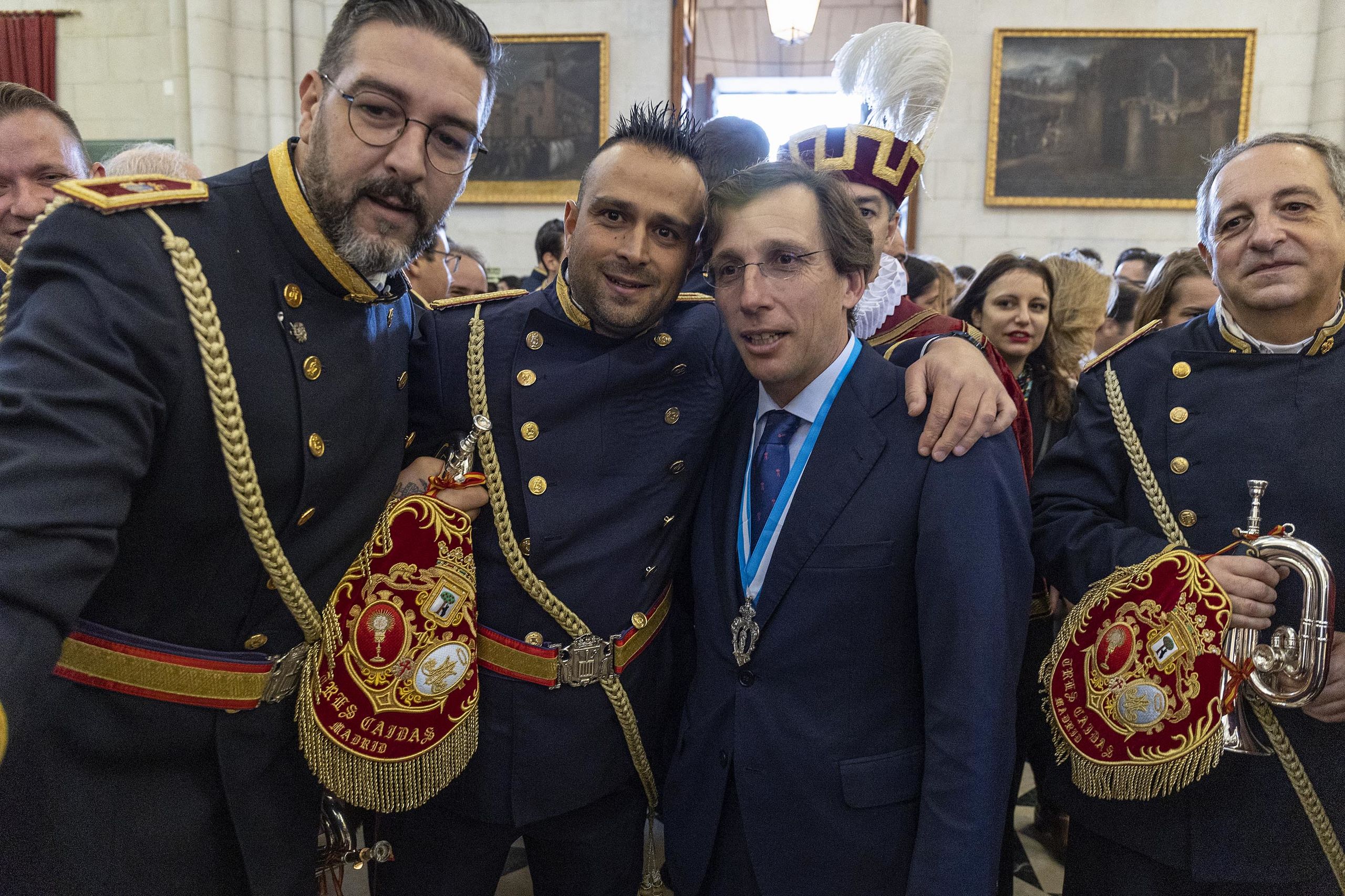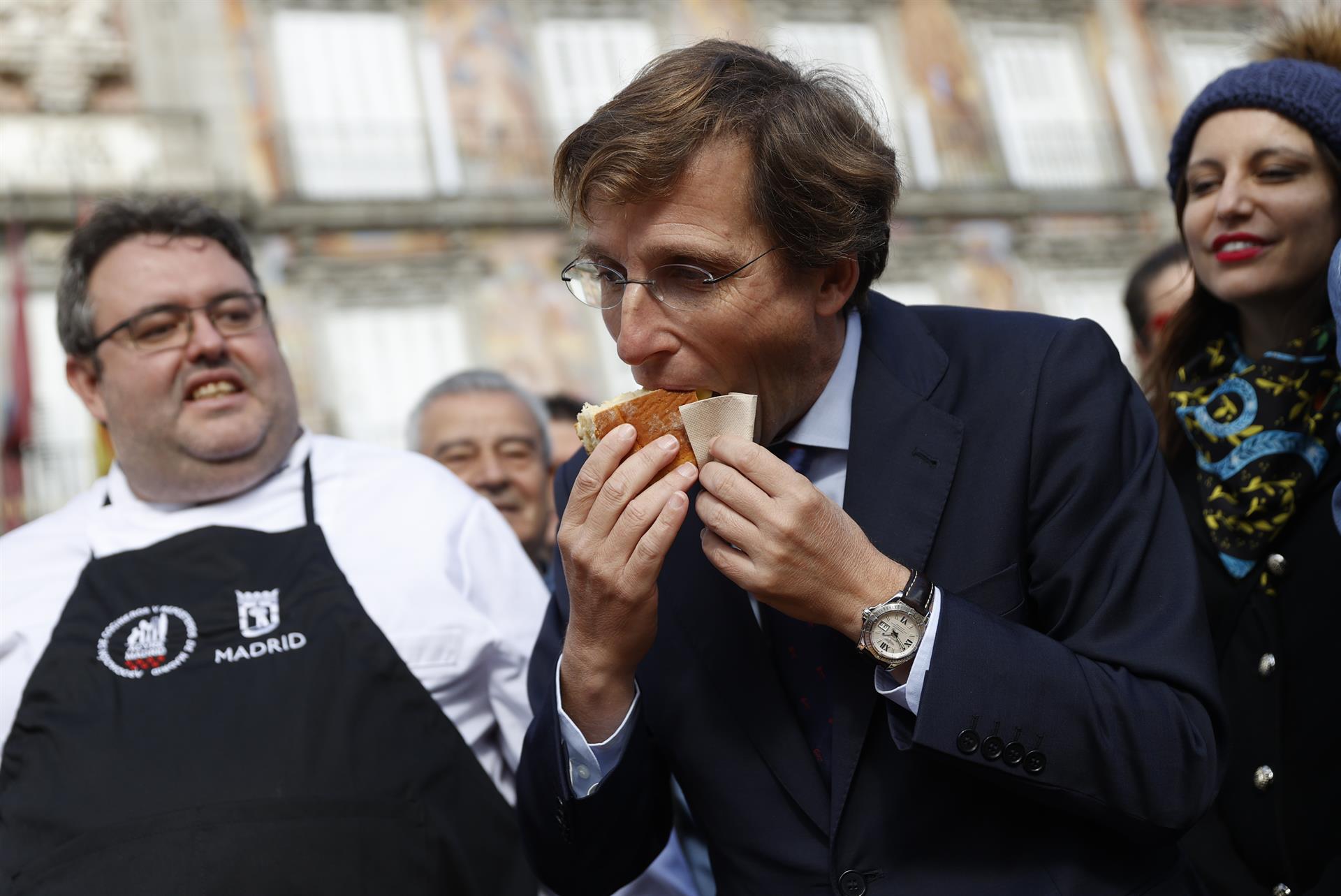 El alcalde de Madrid degusta en la Plaza Mayor la tradicional corona de La Almudena.
