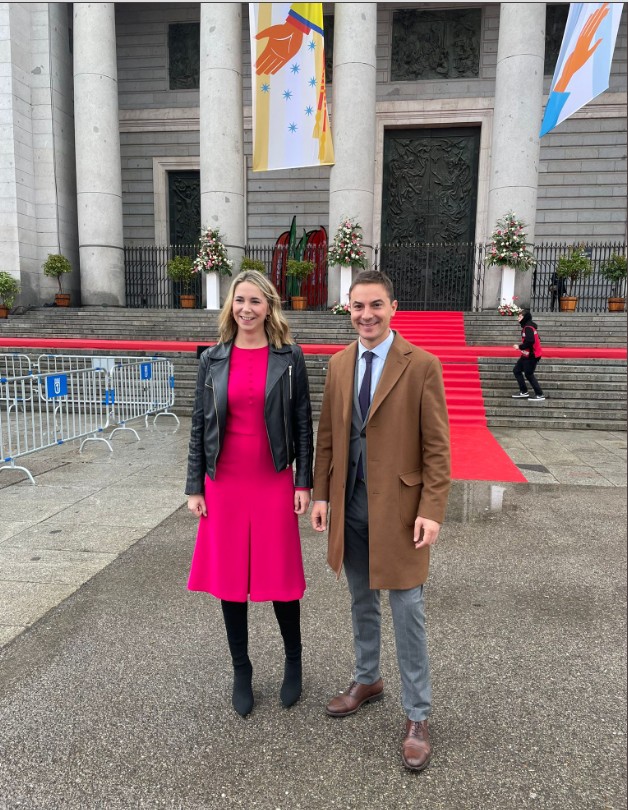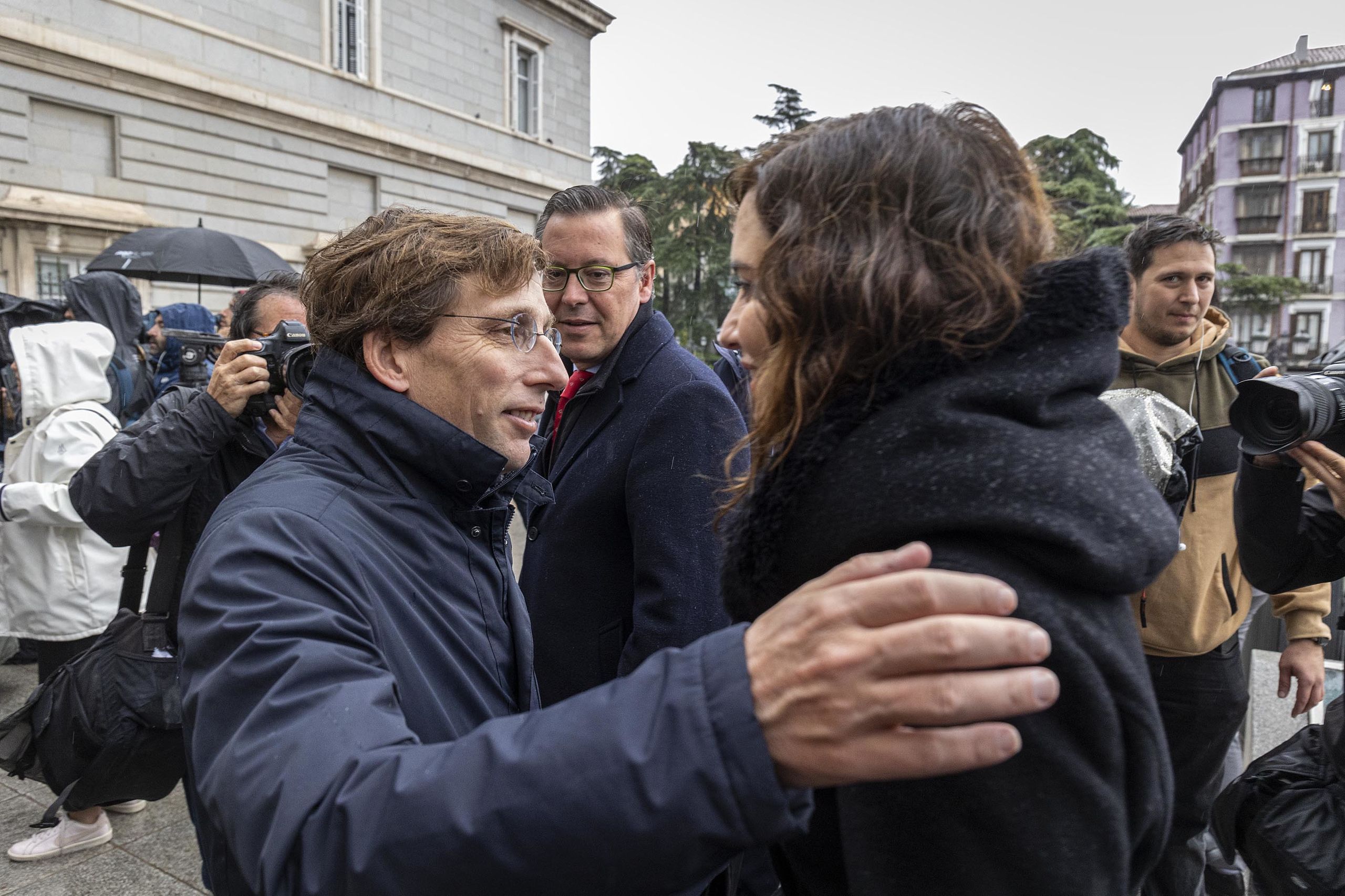 El alcalde y la presidenta madrileña se saludan a su llegada a las inmediaciones de la catedral.