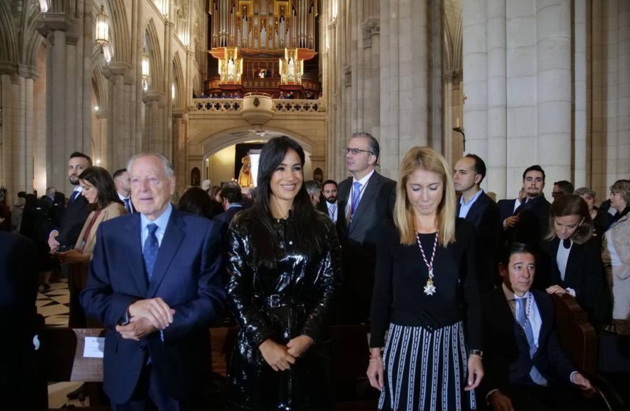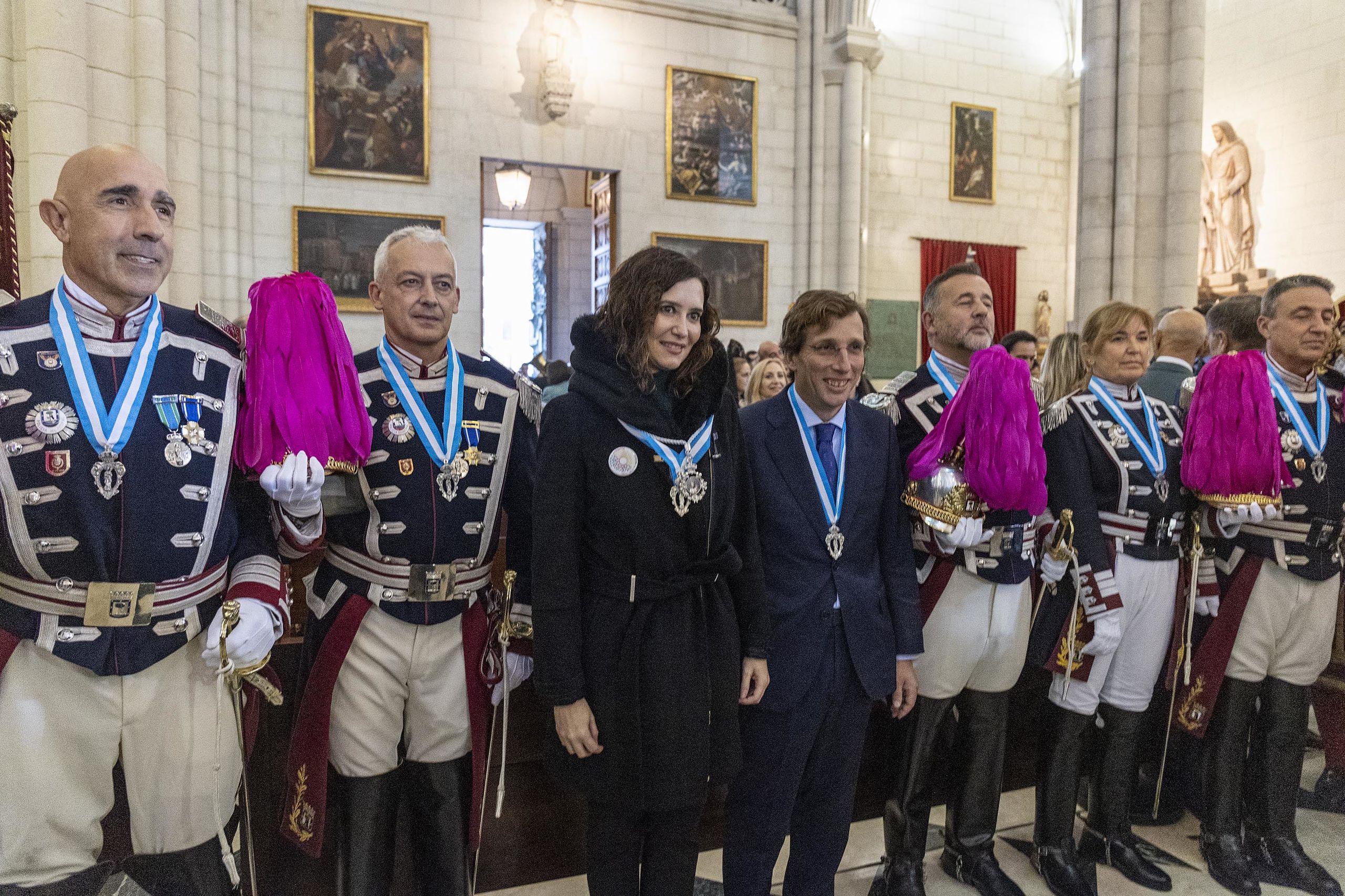 Ayuso junto a la presidenta de la Asamblea, María Eugenia Carballedo, y la imagen de la virgen de La Almudena en el interior de la catedral.