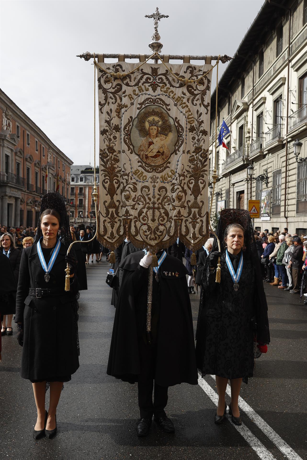 Varias fieles procesionan junto a la imagen de la Virgen de La Almudena, este miércoles, en Madrid.