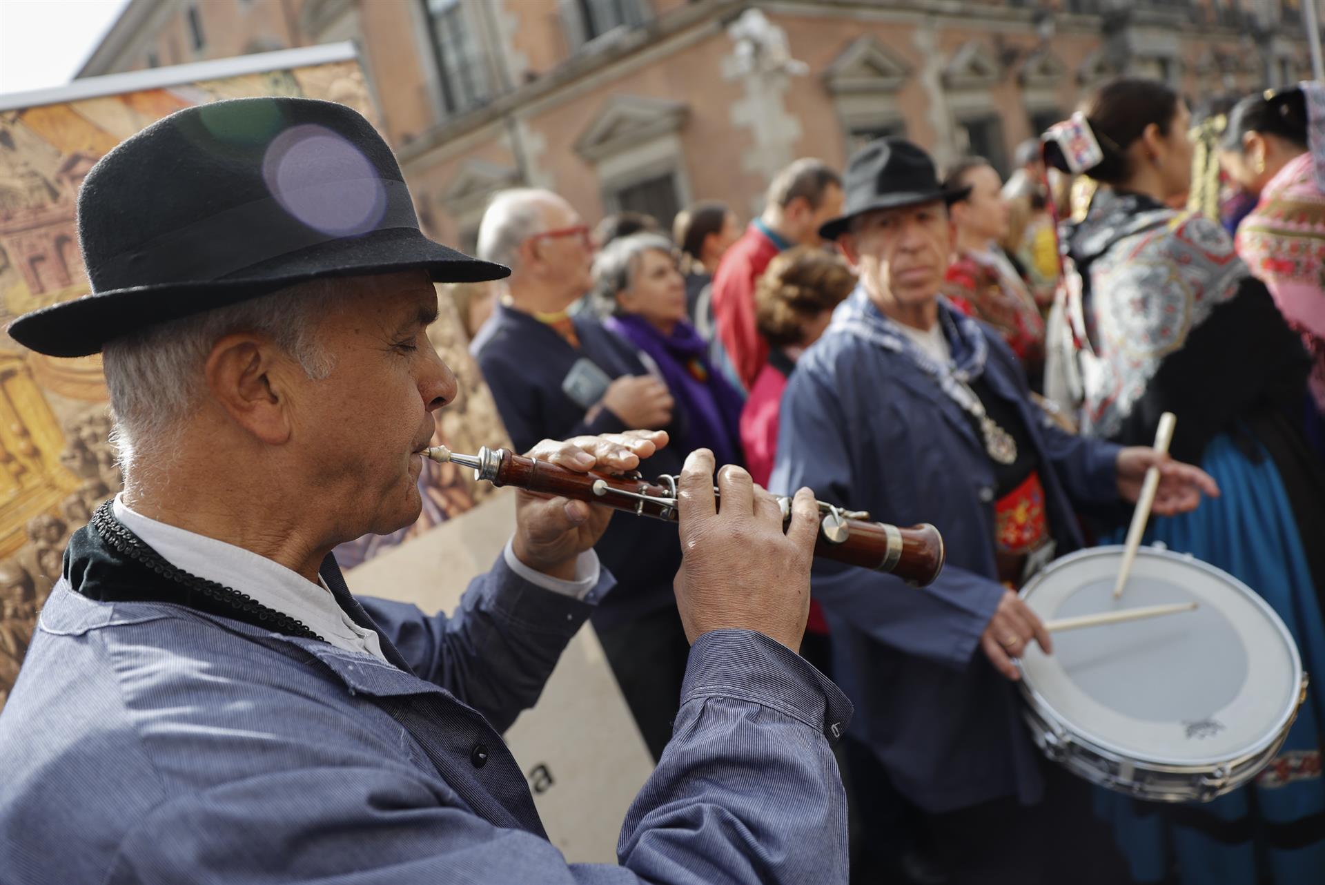 Varios músicos tocan durante la procesión de la Virgen de La Almudena.