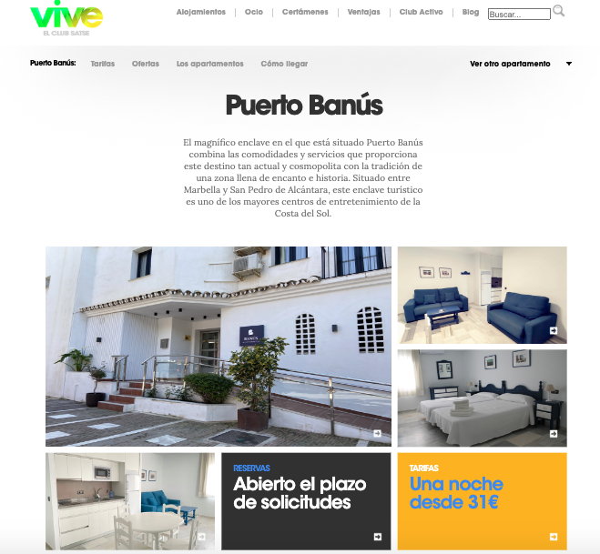Además del seguro de salud privado, SATSE también ofrece a los suyos viajes a Cantabria Jaca o a Puerto Banús. En el caso del lujoso en clave malagueño, el sindicato anuncia 2 apartamentos para 6 personas, 37 apartamentos para 4 personas, 8 apartamentos para 3 personas y 2 estudios, totalmente equipados. Todos a precios competitivos que van desde los 31 euros a los 104 la noche en temporada baja.
