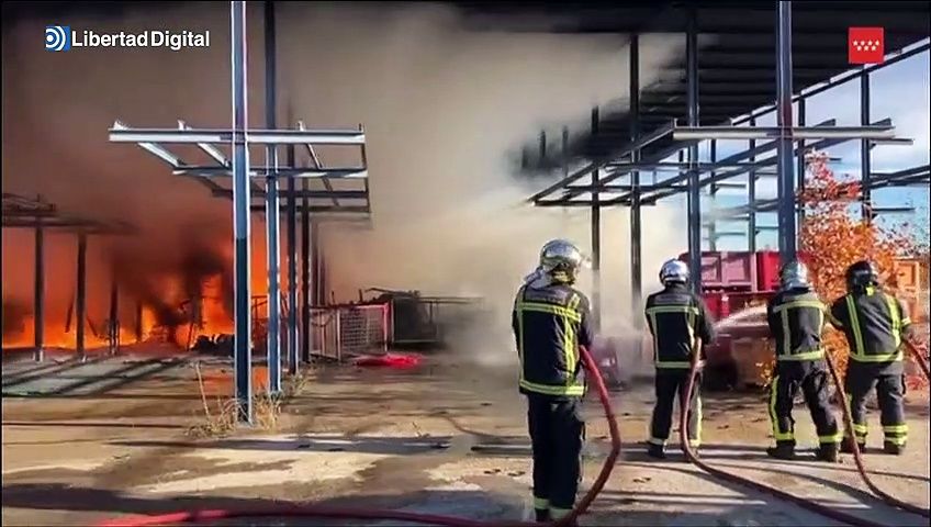 Aparatoso incendio en una nave industrial de Madrid que almacenaba gran cantidad de material de polietileno. En Madrid se da por extinguido un incendio en una nave de Navalcarnero. Gracias a la rápida actuación de 8 dotaciones de bomberos y una unidad de drones en una superficie de 3.000 metros cuadrados. Parte de la cubierta de la nave se vino abajo y ardió gran cantidad de material de polietileno. Los bomberos evitaron que las llamas llegaran a una nave colindante y a un terreno lleno de palés.