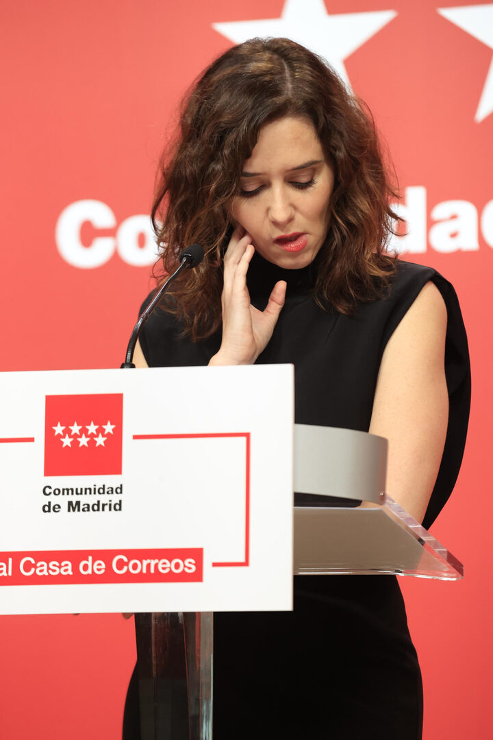 Pero este miércoles dio un paso más y decidió realizar una rotunda declaración institucional. La pronunció nada menos que en la sede del Ejecutivo regional, la Real Casa de Correos, y tras el Consejo de Gobierno, lo que la revestía de una especial importancia.