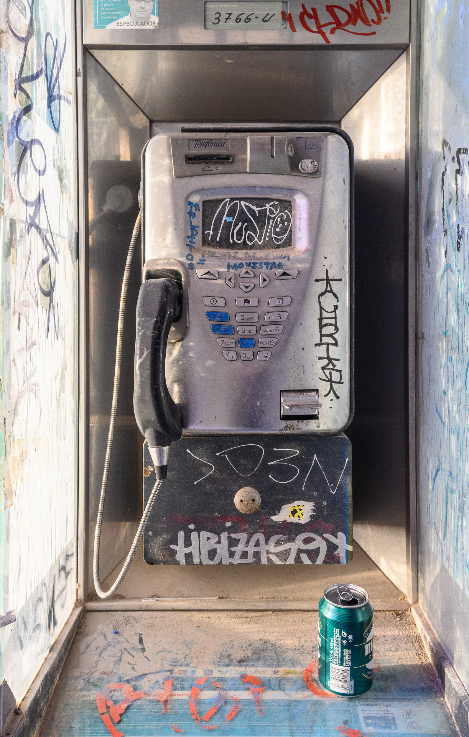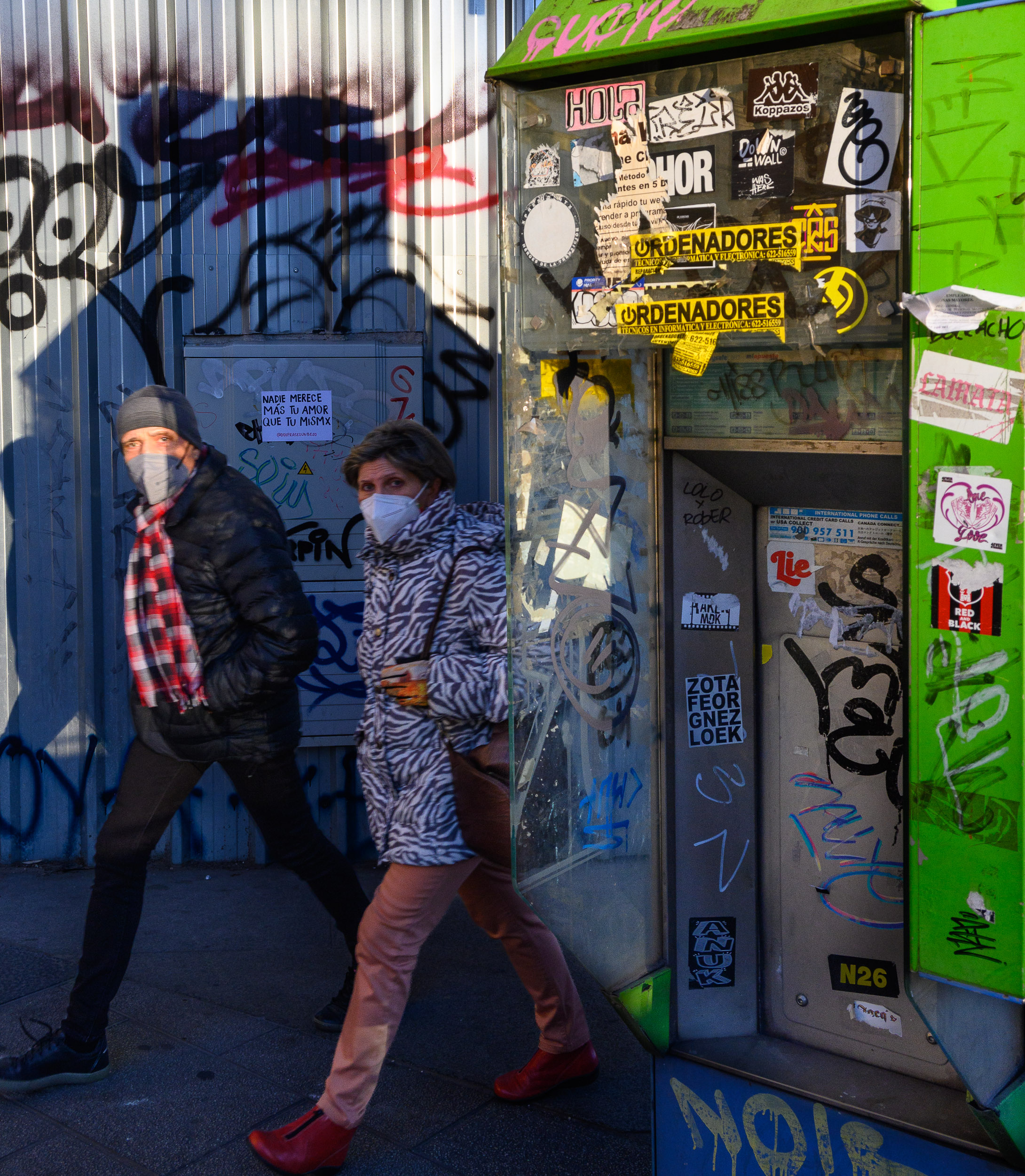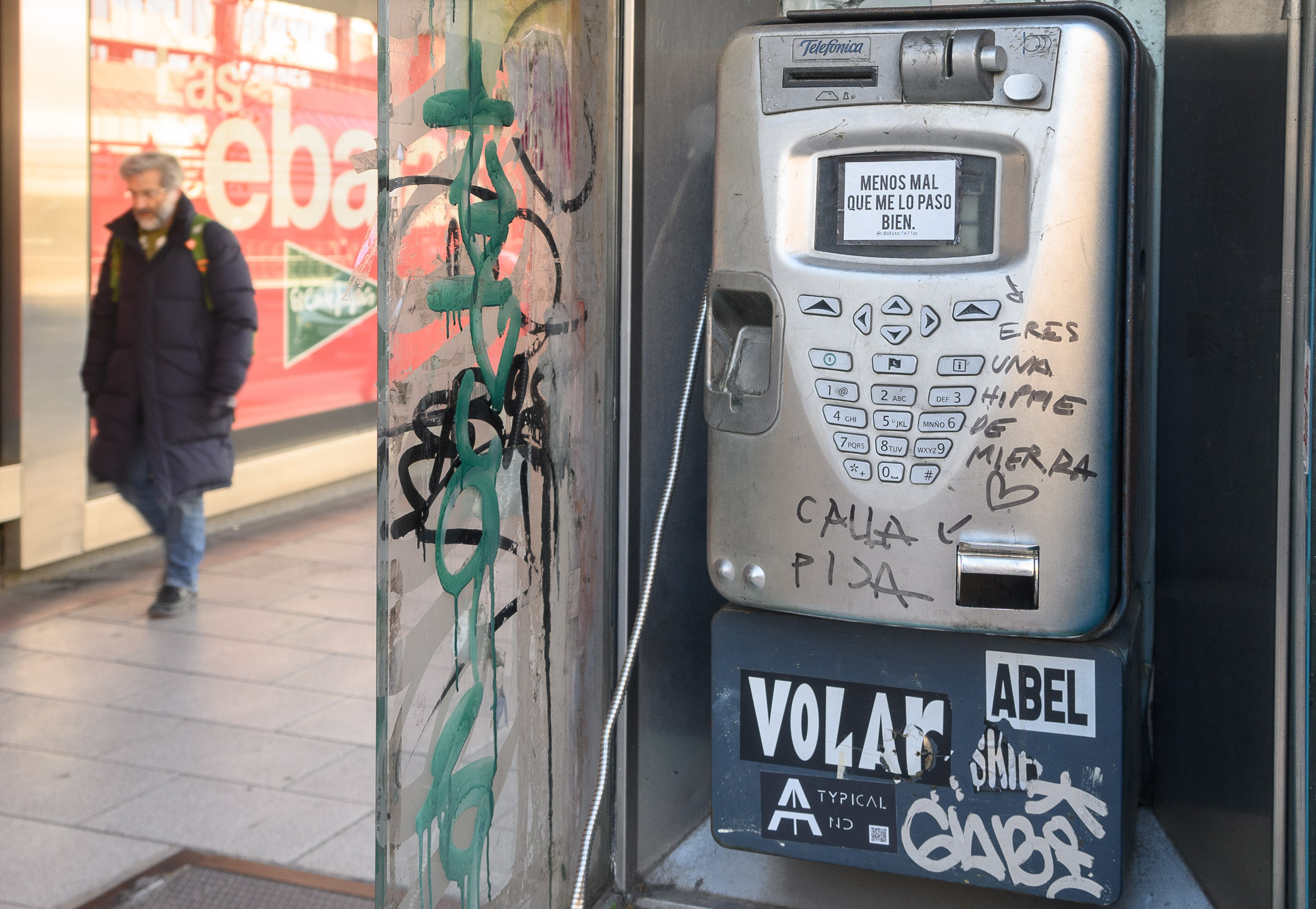 Caídas en completo desuso y en su mayor parte vandalizadas, las cabinas telefónicas viven sus últimos días en las calles de Madrid.