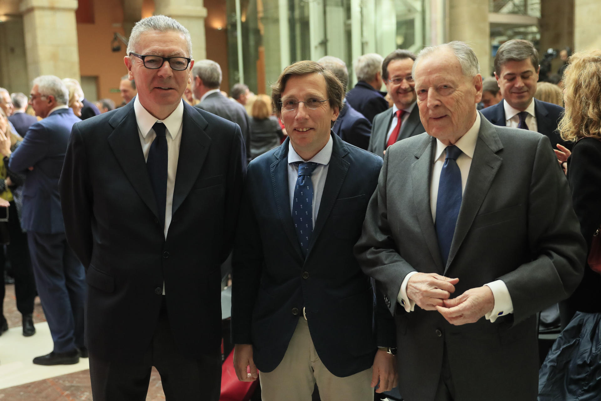 El expresidente de la Comunidad de Madrid, Alberto Ruiz Gallardón, con el alcalde José Luis Martínez Almeida y el exalcalde José María Álvarez del Manzano.