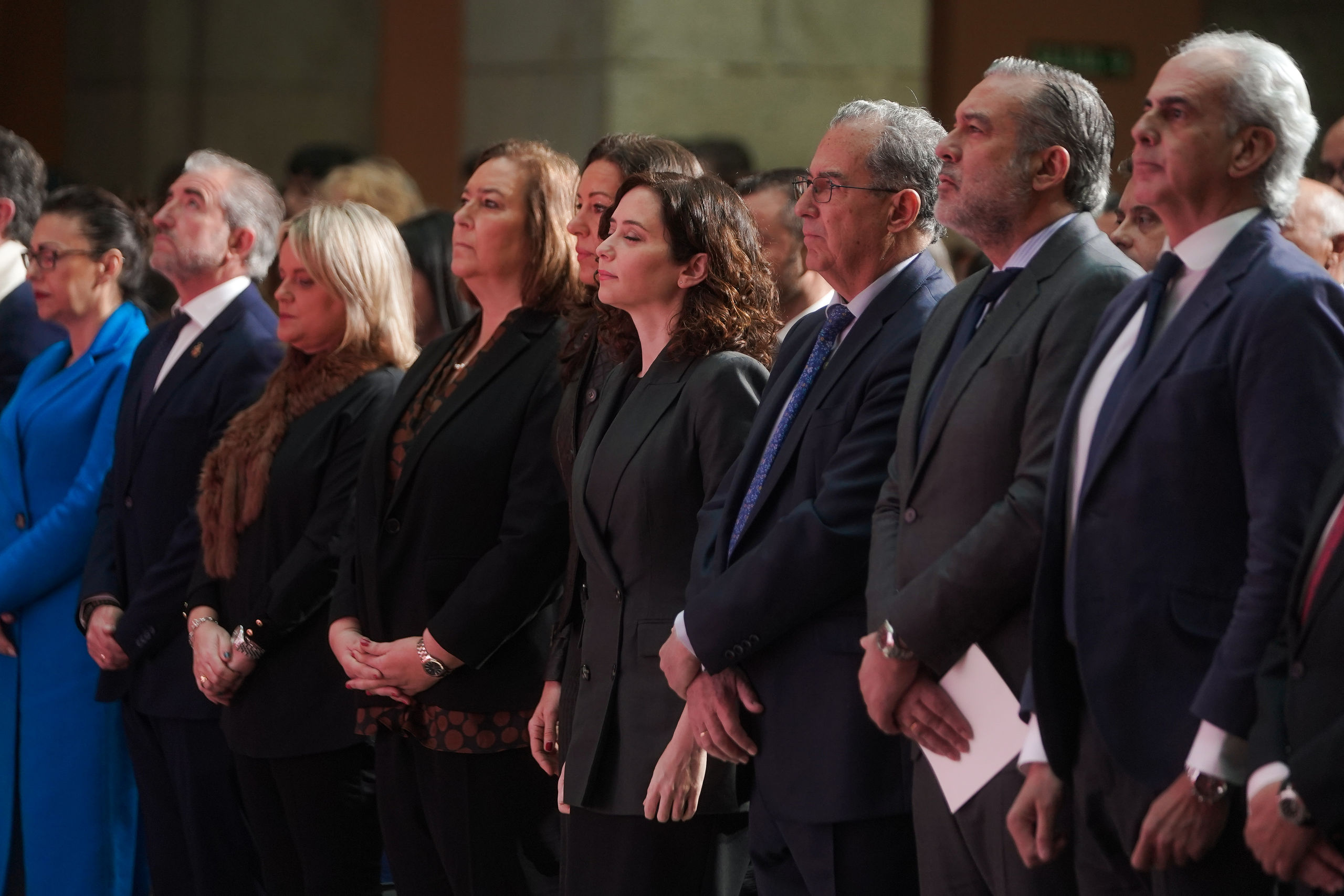 La presidenta madrileña reconoció este lunes a las víctimas del terrorismo de la región con la condecoración de la Gran Cruz de la Comunidad de Madrid, que es la máxima distinción honorífica en este ámbito instituida por el Ejecutivo autonómico. Una iniciativa en reconocimiento a su memoria, y con la que se quiere preservar el sacrificio de las víctimas mortales y los heridos provocados por la violencia terrorista.