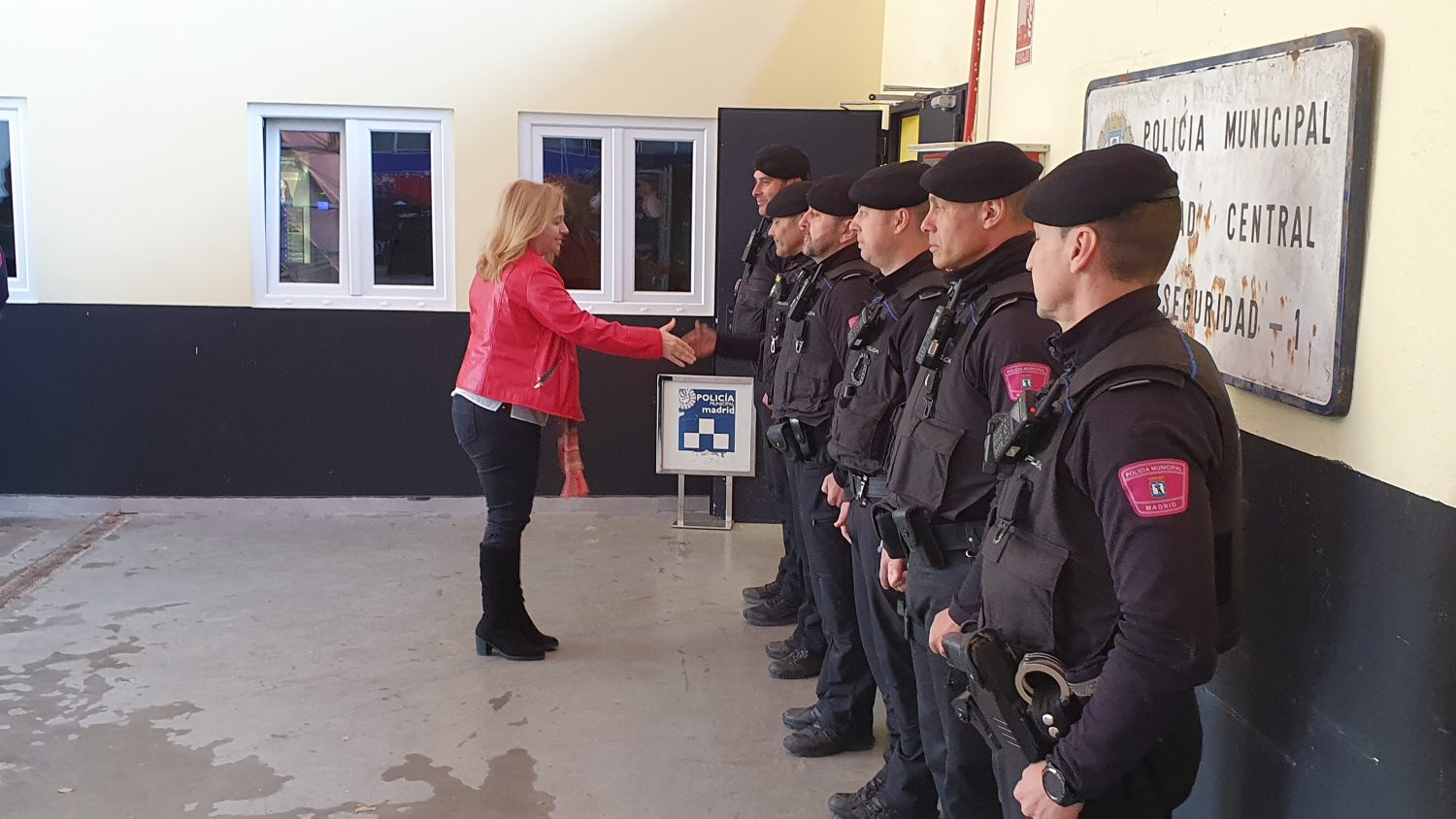 La delegada de Seguridad y Emergencias, Inmaculada Sanz, acompañada del director general de la Policía Municipal, Pablo Enrique Rodríguez, y de varios mandos del cuerpo, ha visitado este domingo las instalaciones de las unidades centrales de seguridad de la Policía Municipal de Madrid.