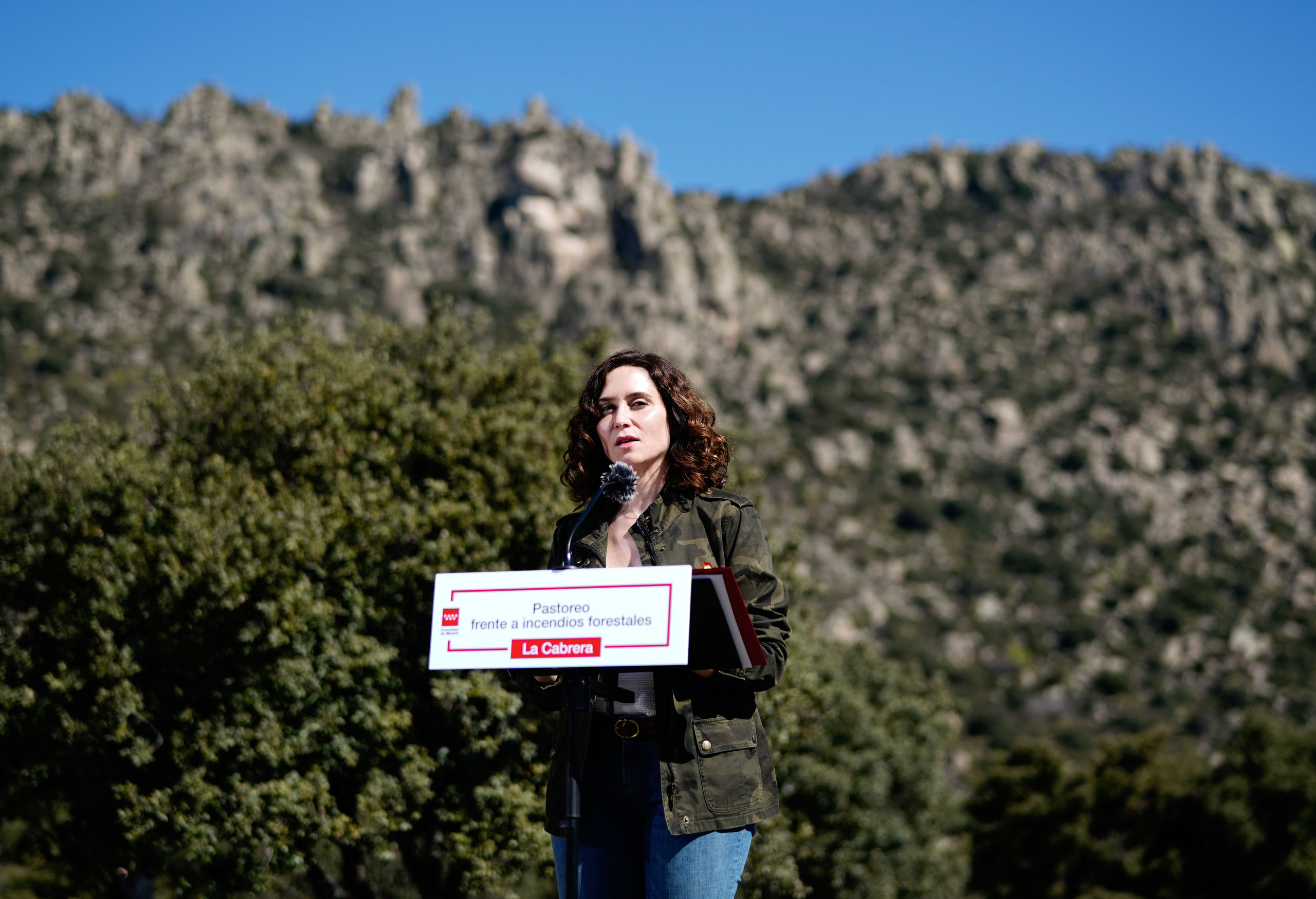 La presidenta de la Comunidad de Madrid, Isabel Díaz Ayuso, ha visitado hoy el municipio de La Cabrera, donde ha presentado la eficacia de las actuaciones preventivas de pastoreo controlado llevada a cabo por ganaderos como herramienta en la lucha contra los incendios forestales. “Recuperamos una antigua costumbre que había caído en desuso: que sean los rebaños quienes desbrocen los caminos y las vías pecuarias y despejen también las áreas de cortafuegos”, ha explicado.