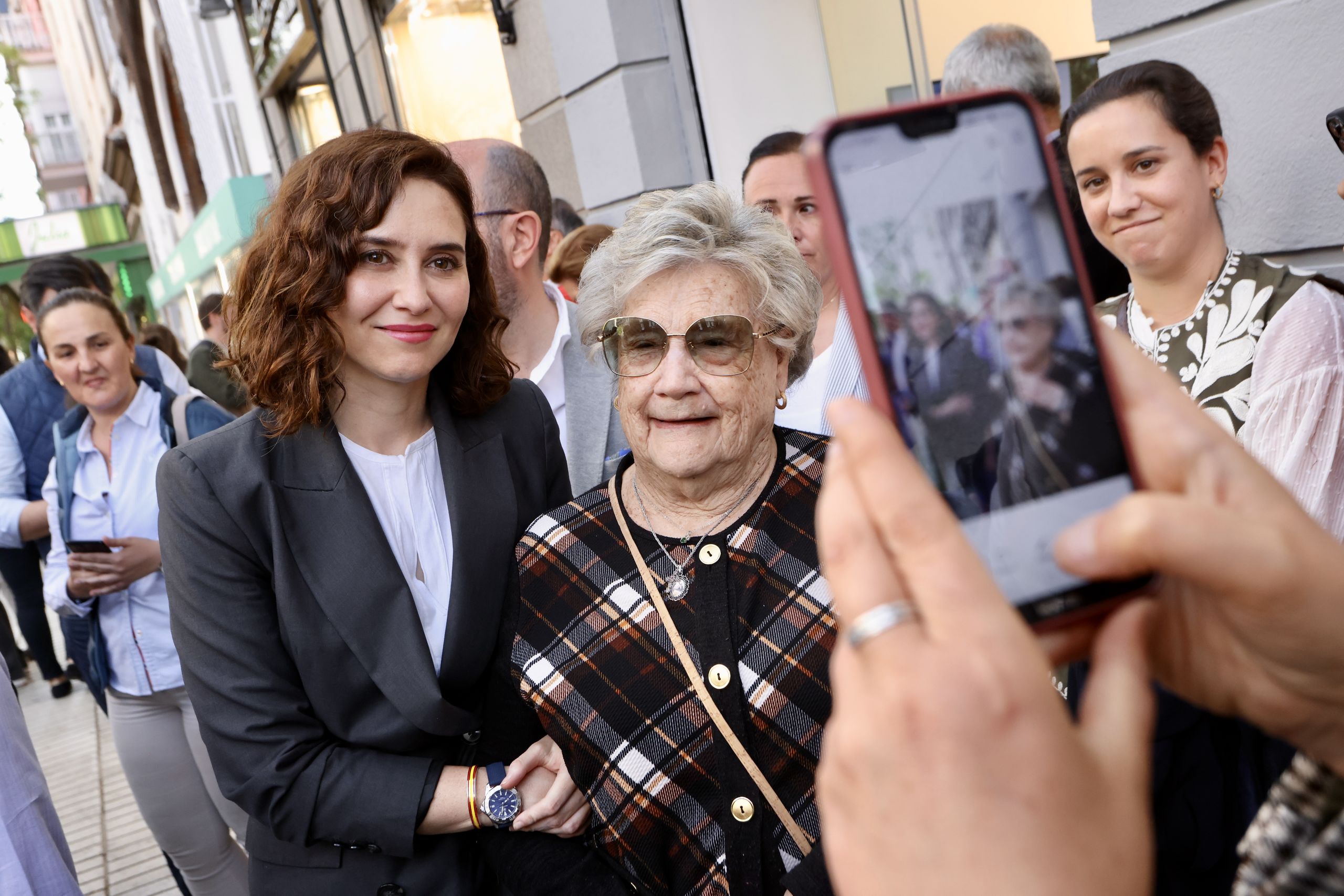 La expectación era tal por la calle Narváez que a la comitiva que acompañaba a Ayuso y a Almeida le costaba avanzar. Todos querían una foto con la presidenta y el alcalde.