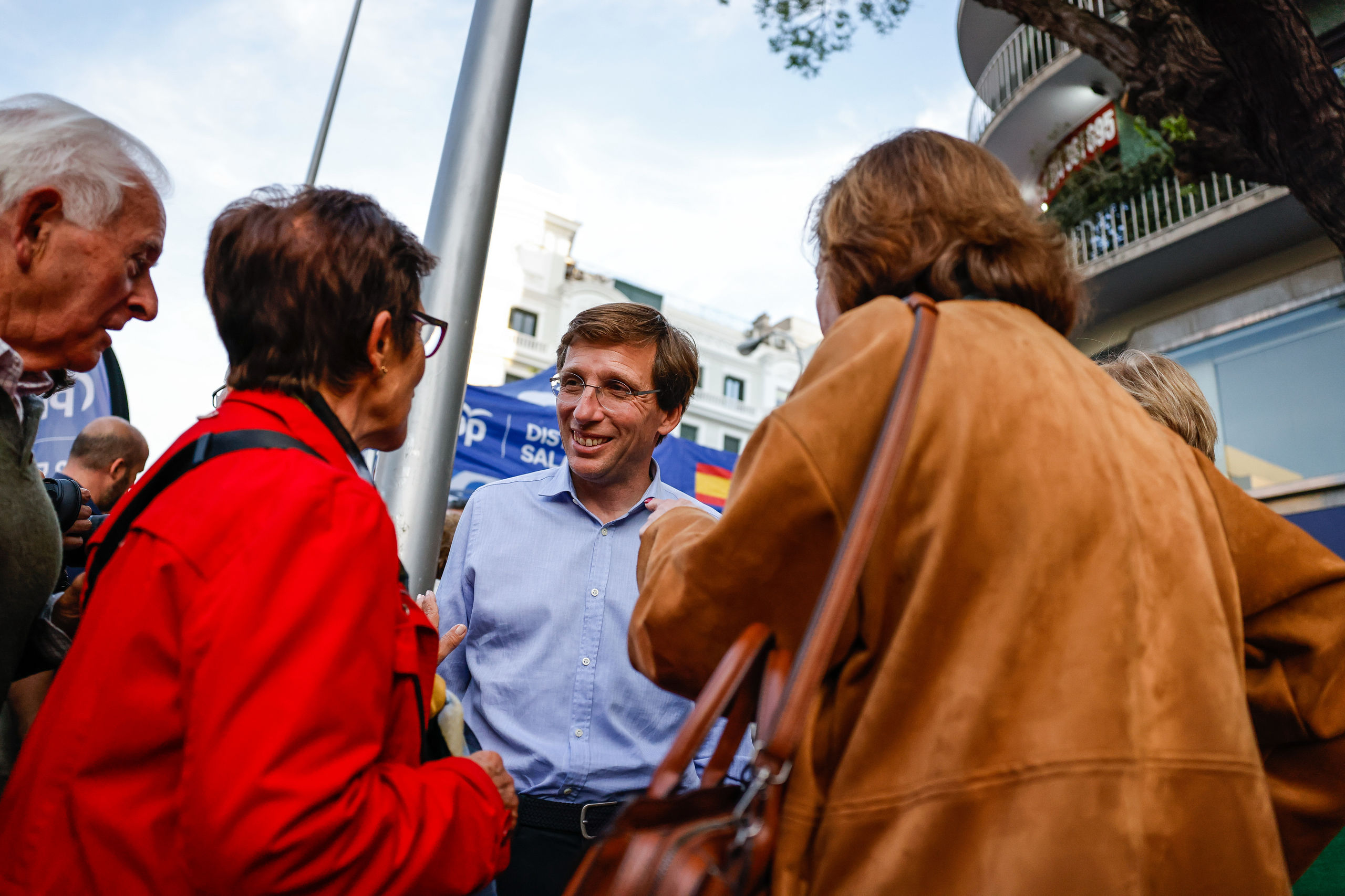 "Estás muy delgado, alcalde" y "guapo" fueron dos de los primeros piropos que le lanzaron al regidor, que respondió que su renovada figura se debe al "deporte". "Pero el balón no se le da muy bien", le replicó esta vecina entre risas al recordar los 'pelotazos' de Almeida en diversos eventos deportivos. Entre una foto y otra foto, también le pusieron deberes. Así, un matrimonio le avanzó que meterá su papeleta en la urna "dando un voto de confianza" pero le advirtió a renglón seguido: "Ojo con las terrazas, alcalde". Almeida se acercó a hablar con ellos, vecinos del parque de Berlín, y se comprometió a visitar la zona para conocer esas molestias de primera mano.