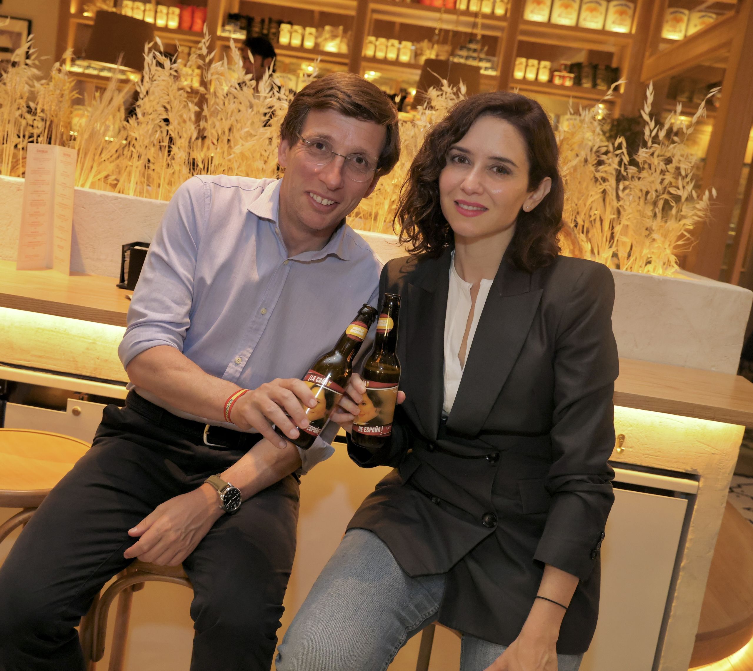 Ayuso y Almeida finalizaron su paseo con una merecida cerveza. En concreto, tomaron La caña de España, la cerveza artesanal creada para las pasadas elecciones del 4-M por la marca Cerveza Damas en honor a la presidenta. En la etiqueta de la cerveza aparece el rostro sonriente de Ayuso sobre los colores de la bandera nacional. Cuando la lanzaron utilizaron el hastag #YoConAyuso, para apoyar su candidatura en redes sociales, y el lema Que nadie nos quite nuestra manera de vivir.