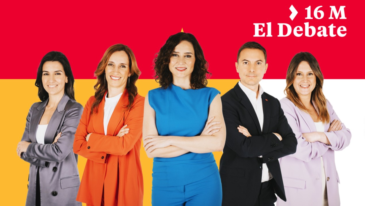 Con estos mimbres se presentarán al debate, que este martes organiza Telemadrid, el único en el que coincidirán todos ellos. Comenzará a las 21:45 y el moderador será el director y presentador del telediario, Víctor Arribas. Cada candidato tendrá un minuto de presentación y un minuto final para pedir el voto.