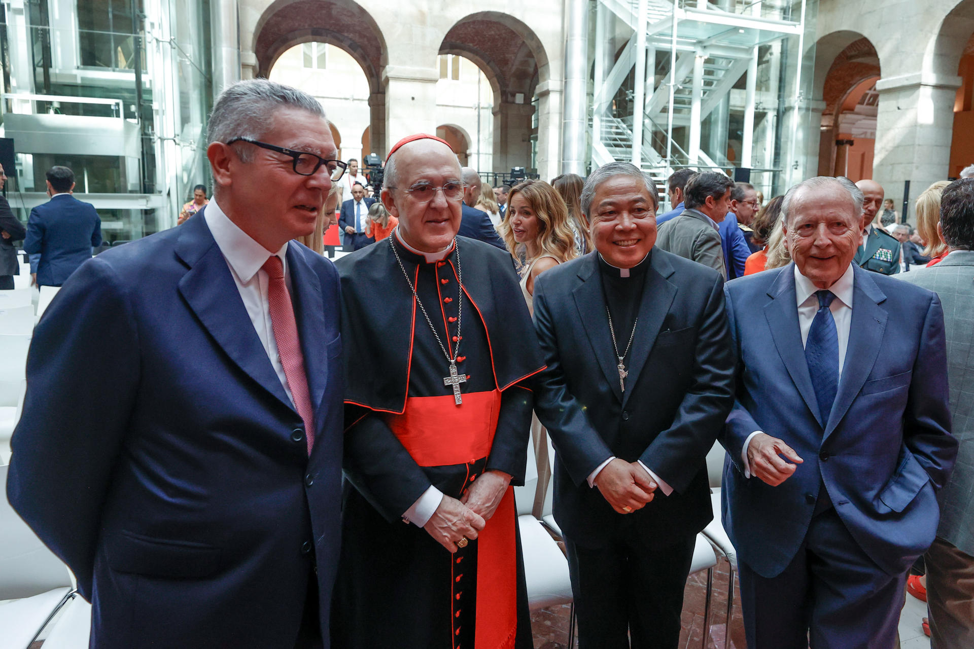 Los exalcaldes de Madrid, Alberto Ruiz Gallardón y José María Álvarez del Manzano posan junto al arzobispo de Madrid, Carlos Osoro, y el el Nuncio Apostólico, Monseñor Bernardito Auza.