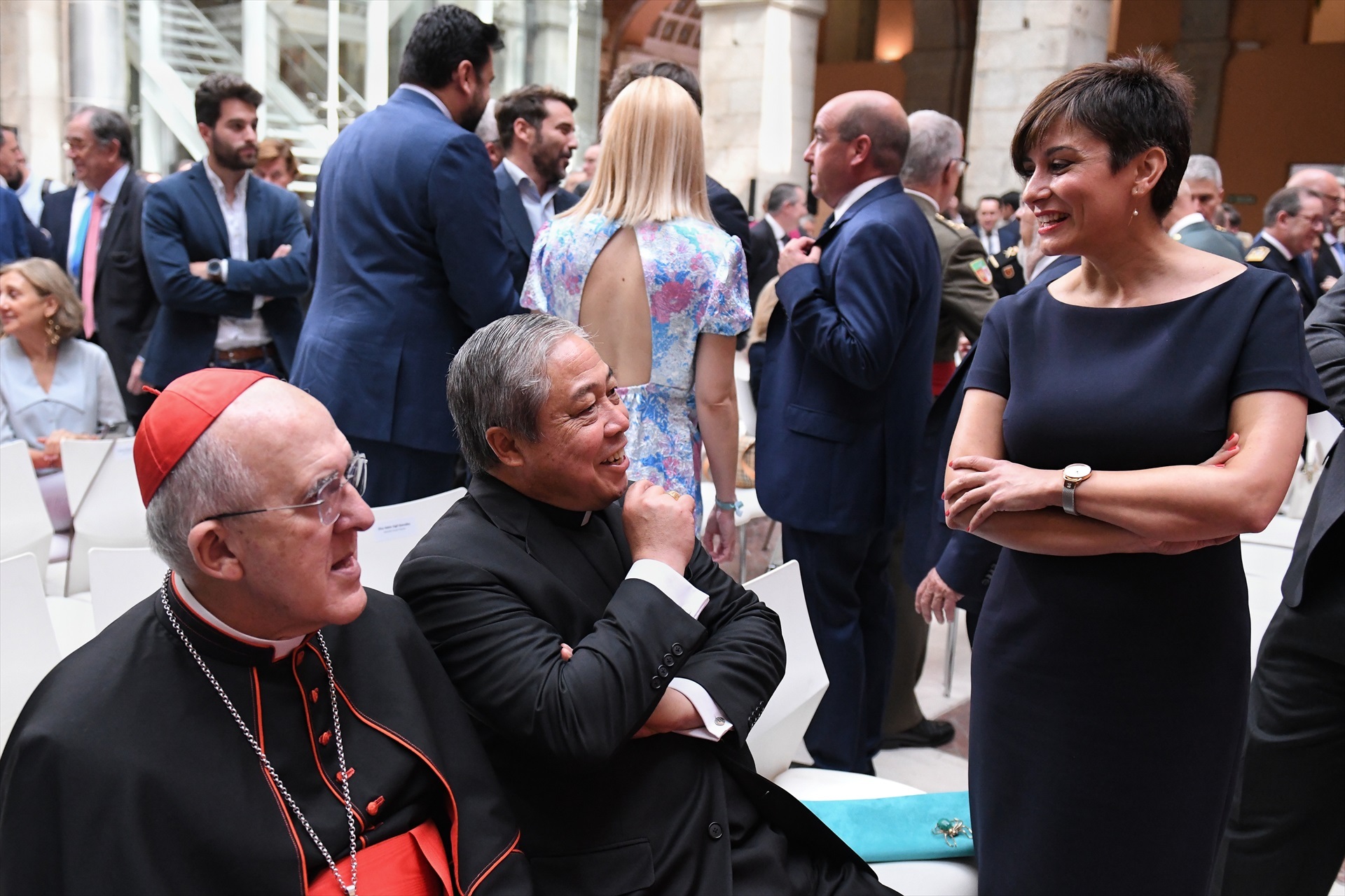 El exarzobispo de Madrid, el cardenal Carlos Osoro; el Nuncio Apostólico, Monseñor Bernardito Auza y la ministra Portavoz y de Política Territorial, Isabel Rodríguez.