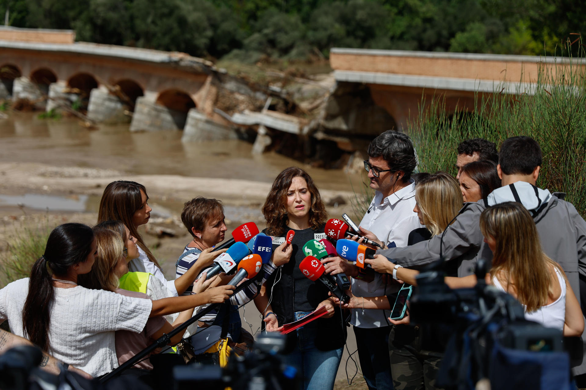 La presidenta madrileña ha acudido a una de las zonas más afectadas por la DANA y ha pedido al Gobierno que declare “zona catastrófica" a los municipios más afectados.