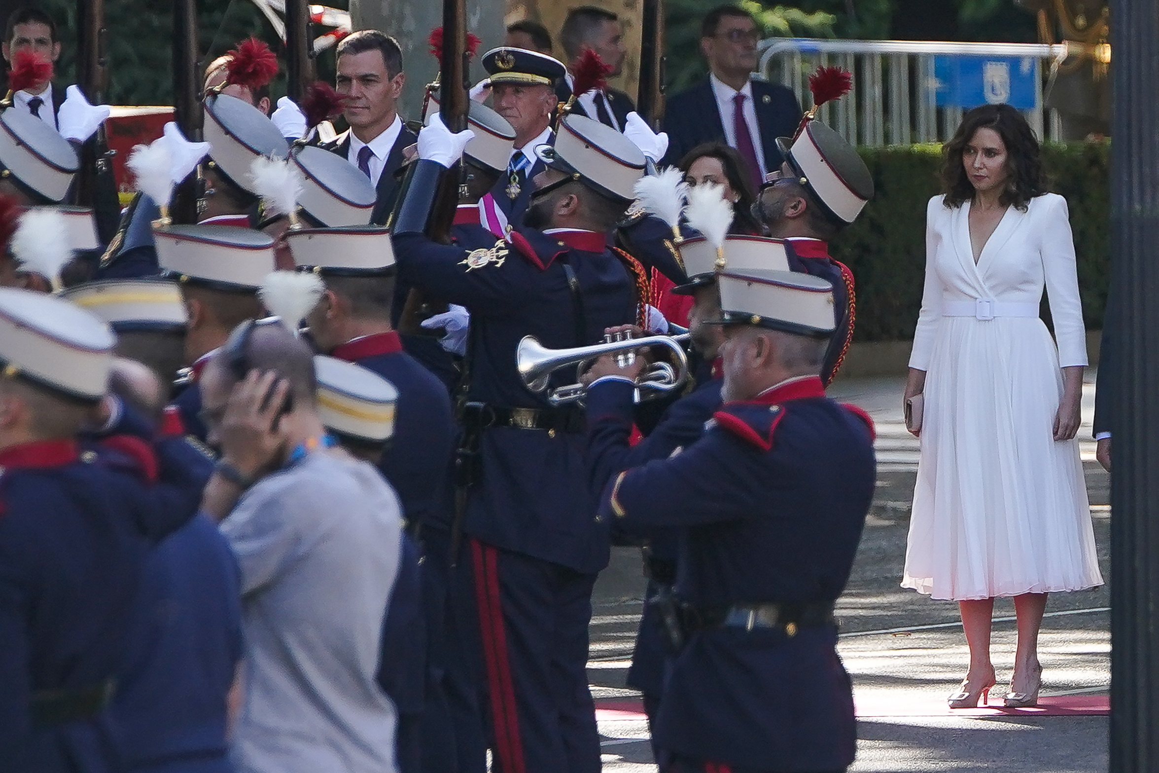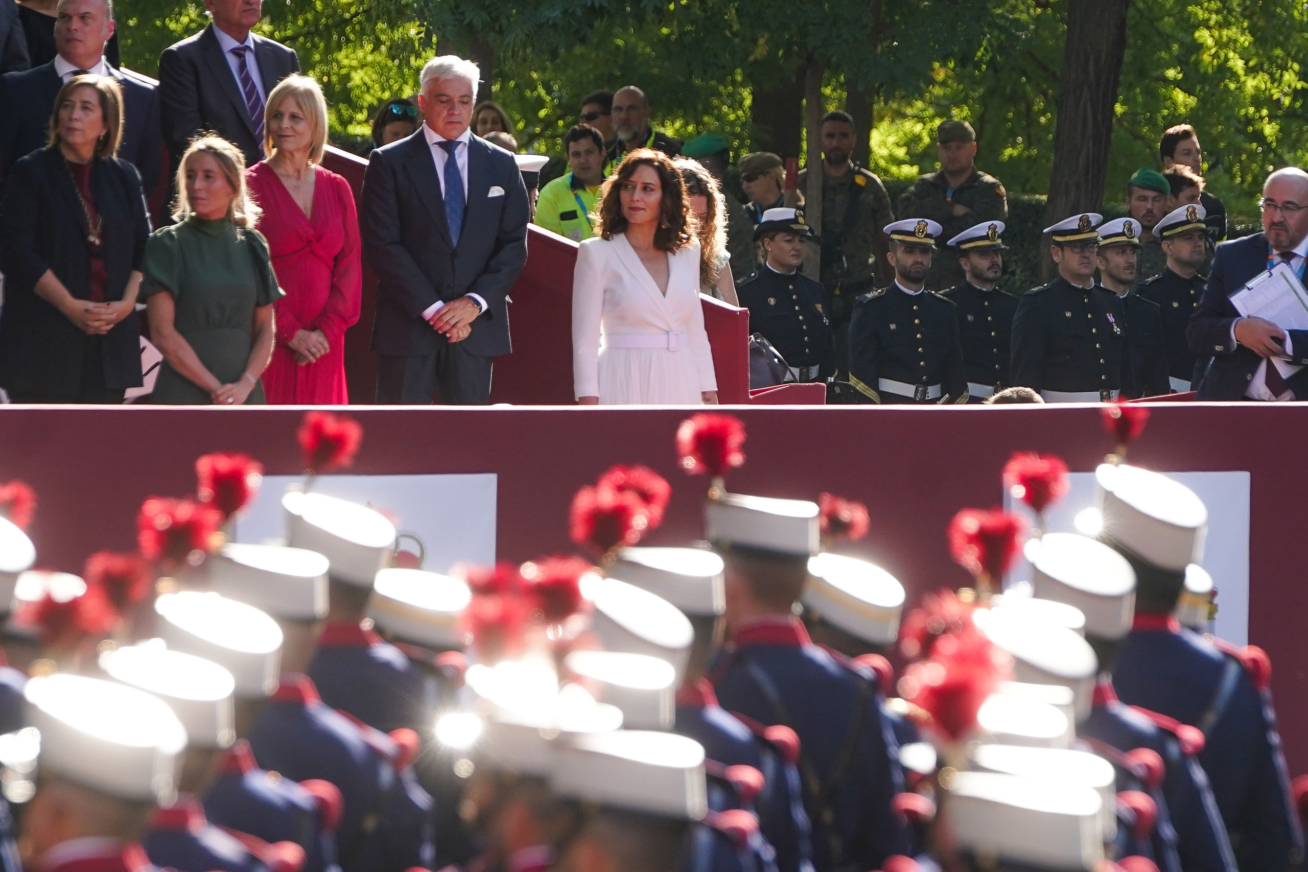 La presidenta de la Comunidad de Madrid ha participado en el desfile de la Fiesta Nacional. Antes de que diera comienzo el acto, Isabel Díaz Ayuso, preguntada por los previsibles abucheos a Pedro Sánchez, ha señalado que desde hace días se estaban “poniendo la venda" antes de la herida. “Pero esto no lo ha organizado nadie".