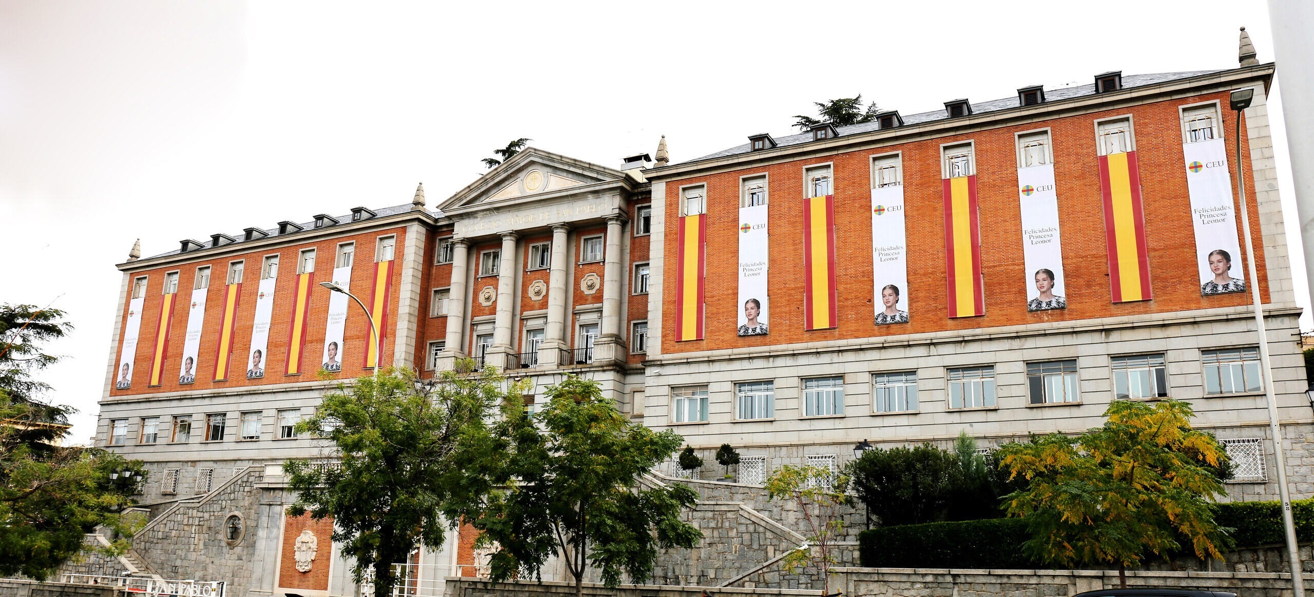 El CEU ha engalanado su Colegio Mayor Universitario con los colores de España y un retrato de Leonor por su mayoría de edad.