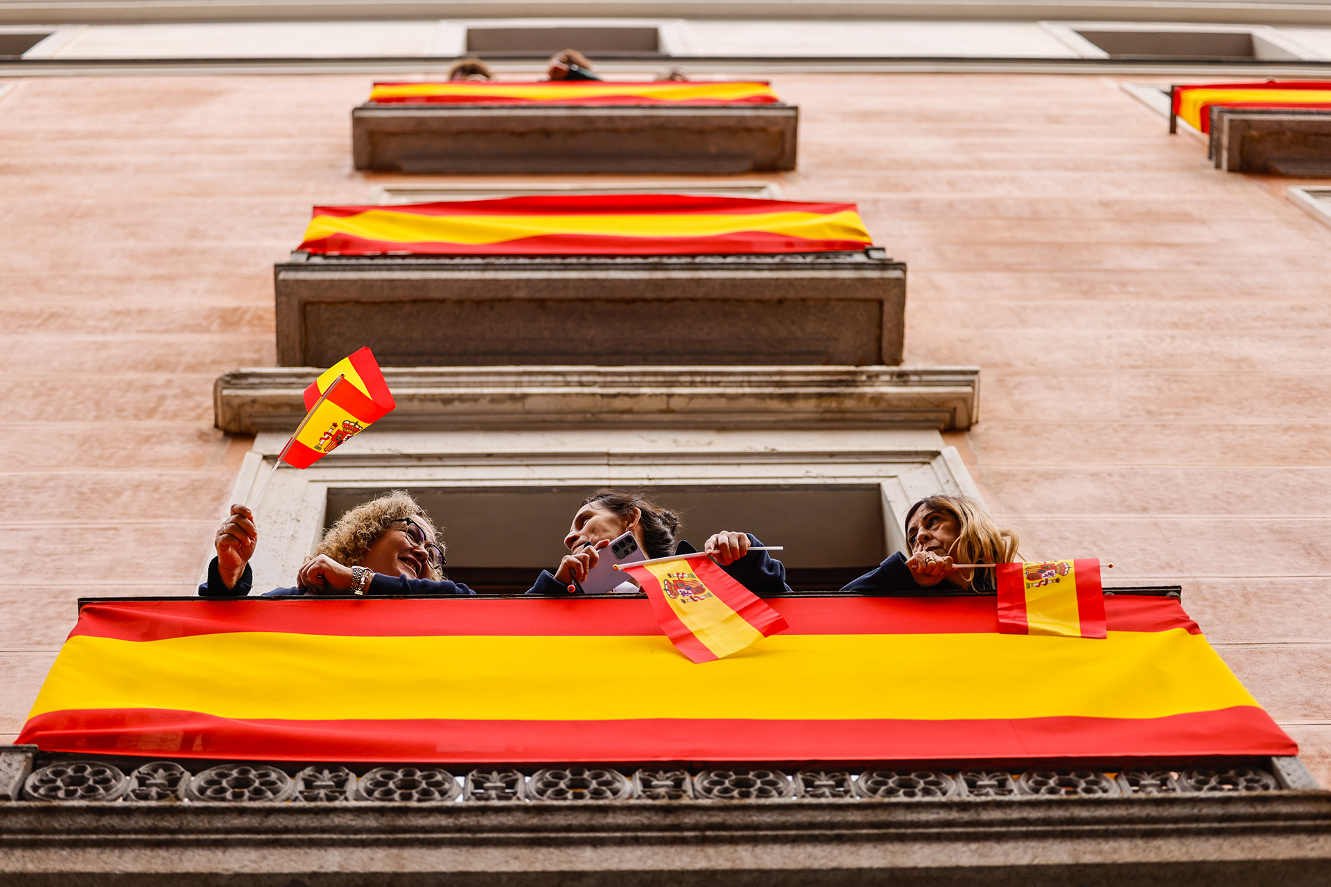 Los ciudadanos se agolpan en las calles portando banderas de España para celebrar la jura de la princesa Leonor.
