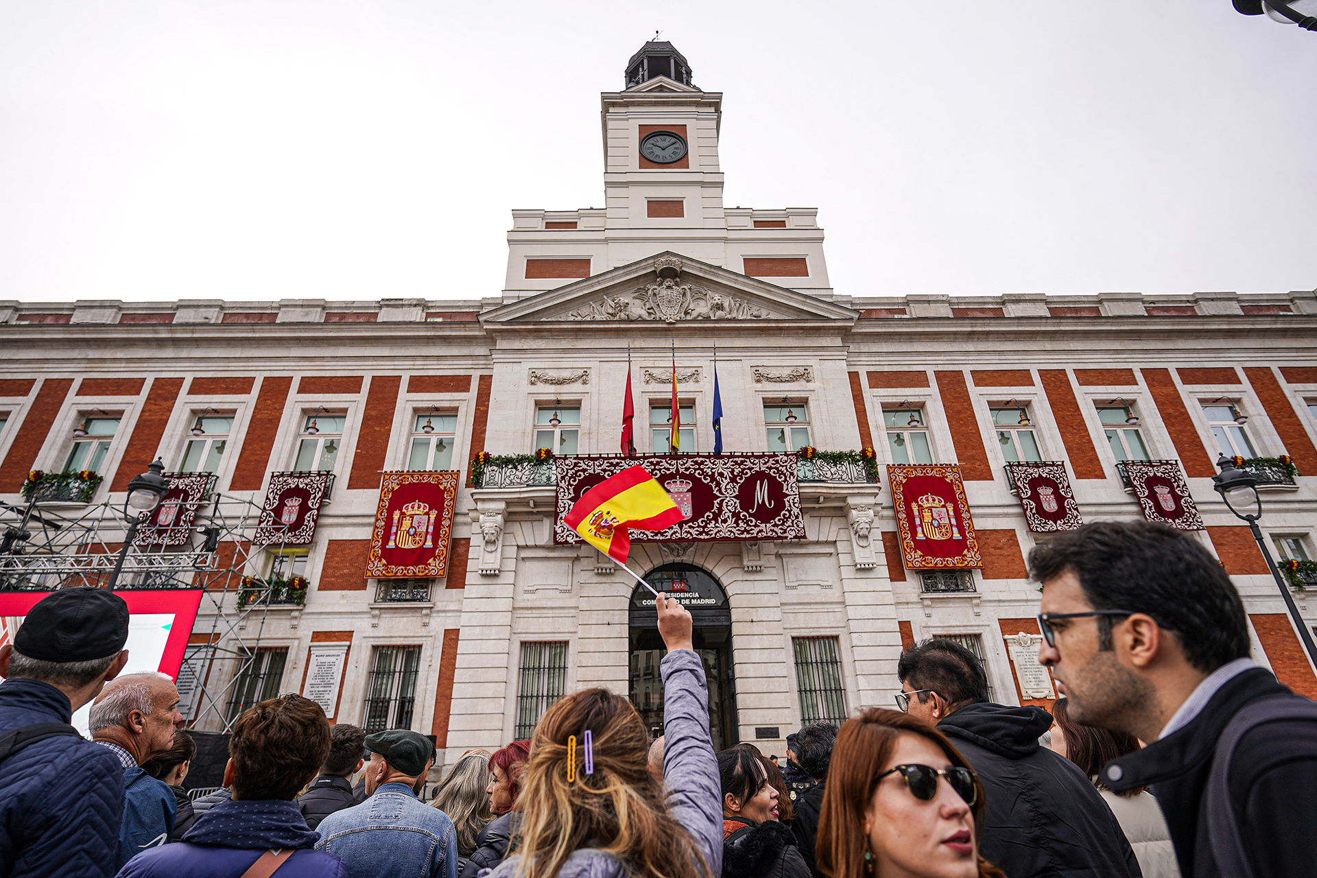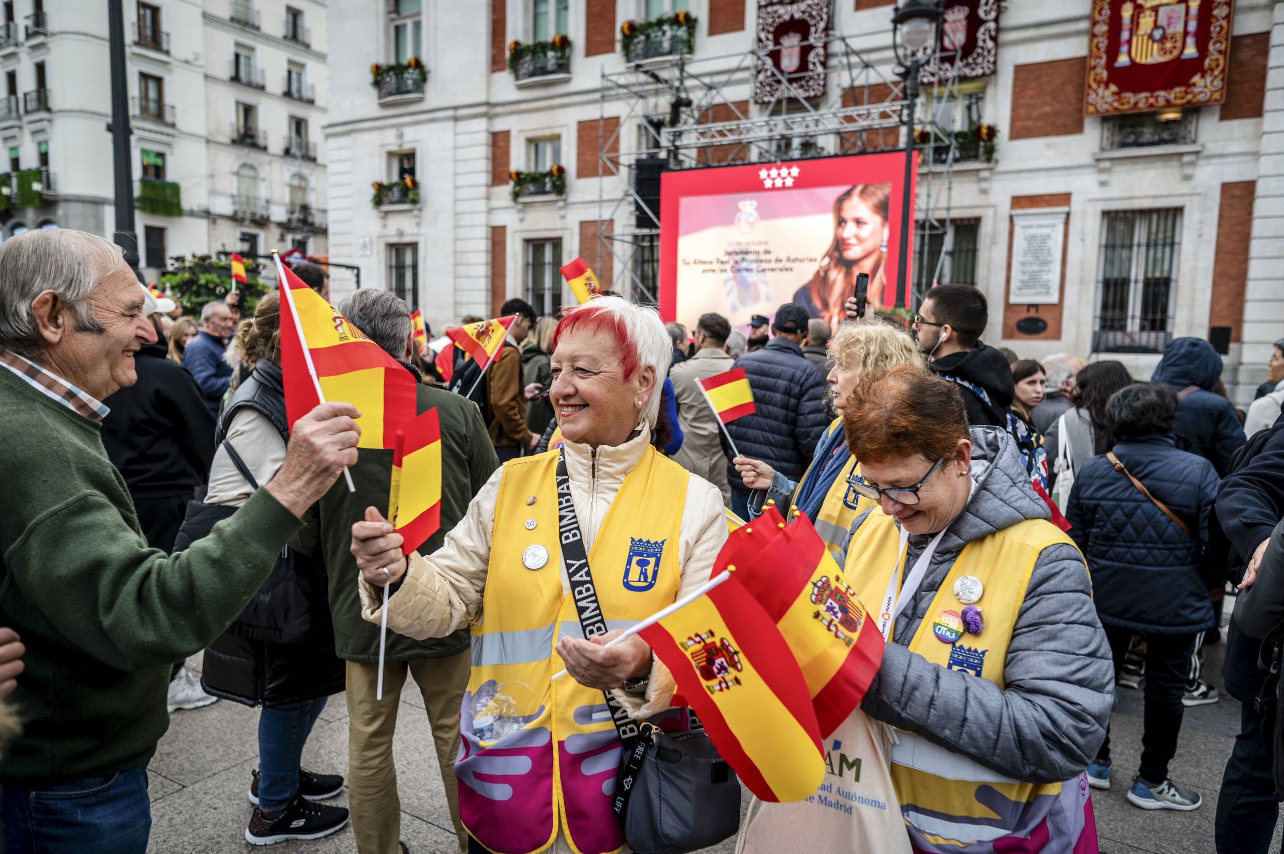 Ambiente festivo en la puerta del Sol de Madrid para celebrar la jura de la Constitución por parte de la princesa Leonor.