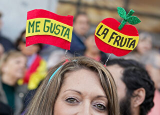 Si en los días siguientes a la investidura ciudadanos anónimos enviaron cestas de fruta a la sede de la Comunidad de Madrid en la Puerta del Sol, en la masiva manifestación del 18 de noviembre contra la amnistía el eslogan "me gusta la fruta" fue uno de los más vistos.