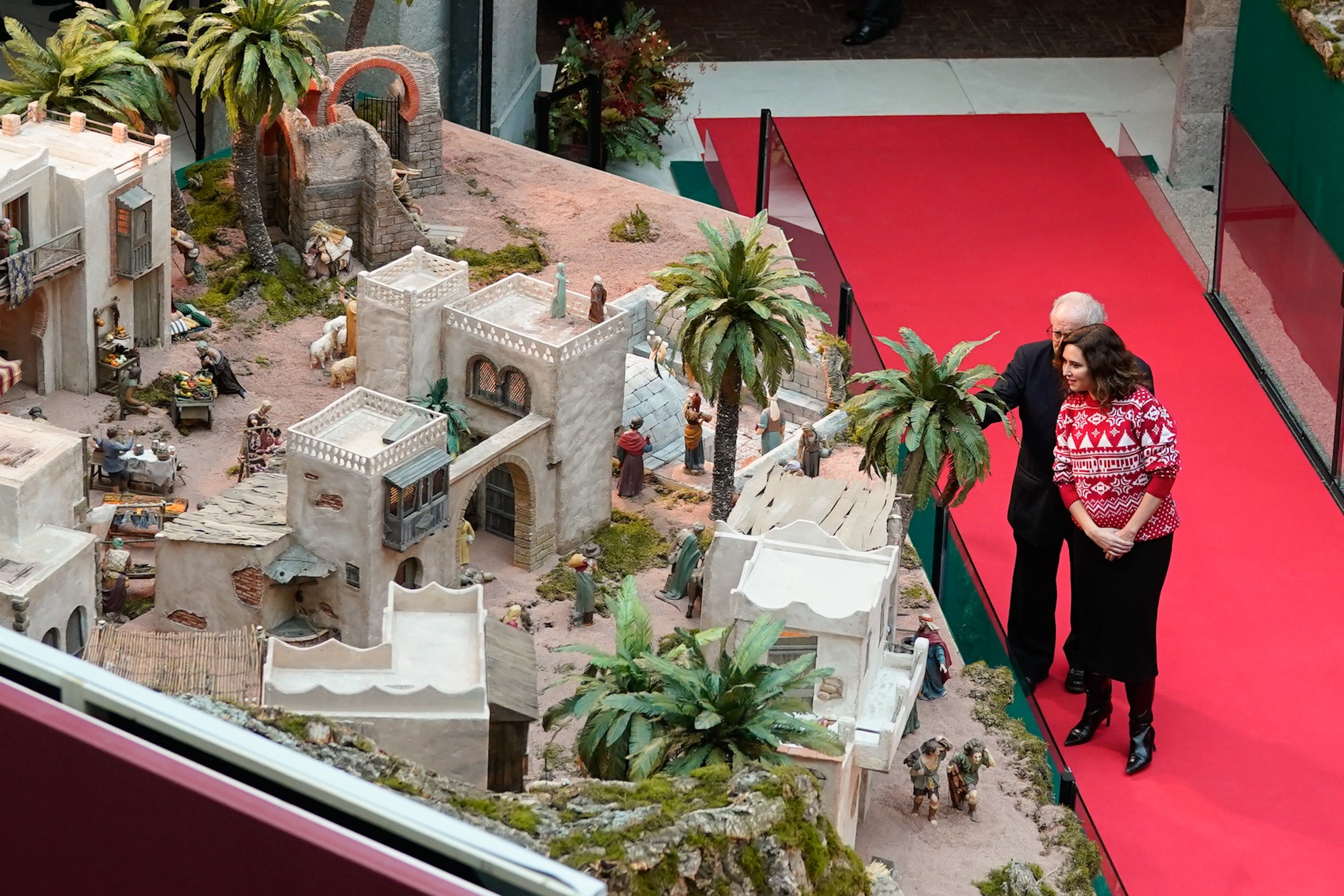 La presidenta de la Comunidad de Madrid, Isabel Díaz Ayuso, ha inaugurado este jueves el tradicional Belén de la Real Casa de Correos, que este año propone un homenaje al primer nacimiento que San Francisco de Asís, patrón de los belenistas, creó en la gruta de Greccio (Italia) en la noche de la Navidad de 1223 y del que se cumplen 800 años.