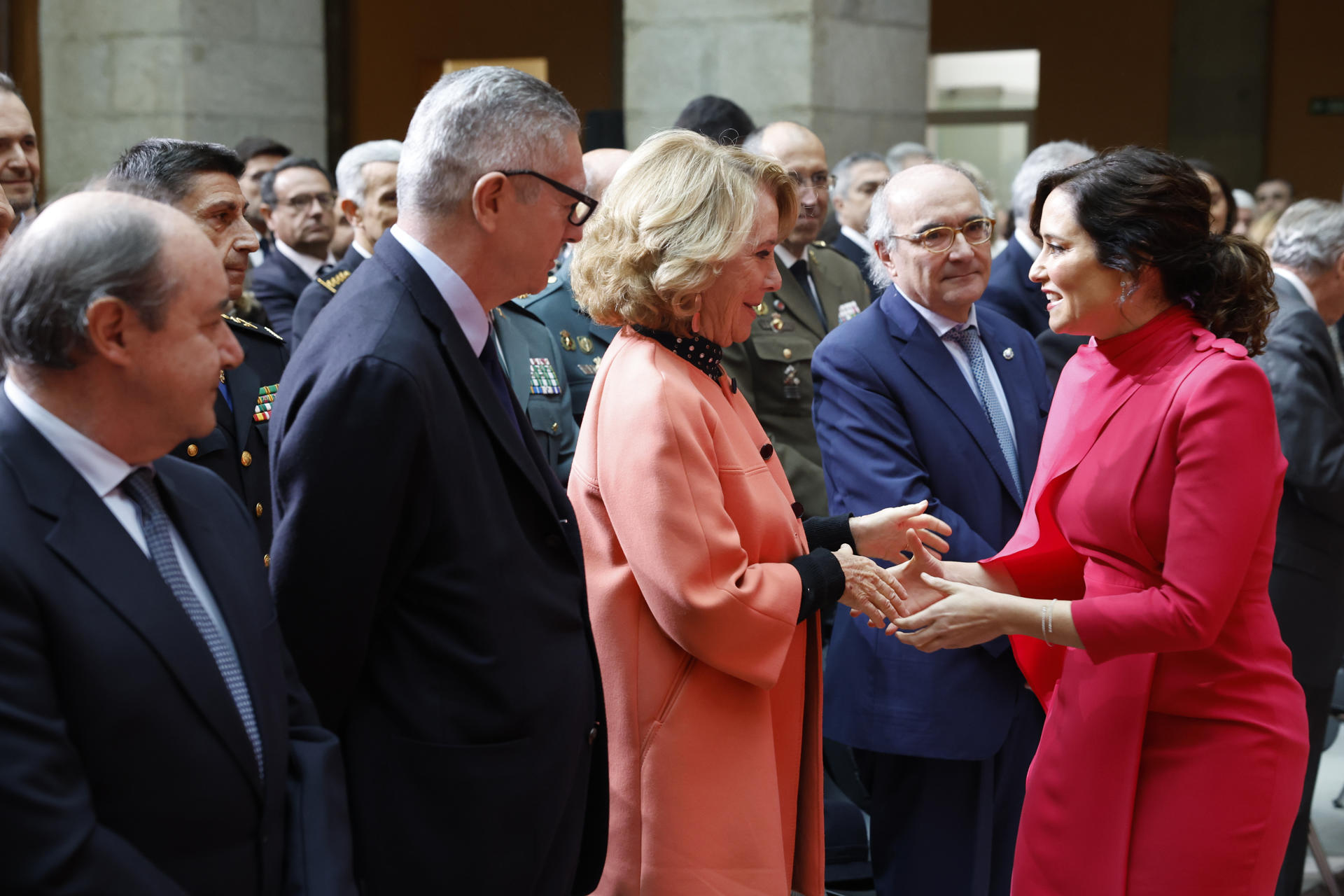 Ayuso saluda a Aguirre a su llegada al acto de homenaje a la Constitución.