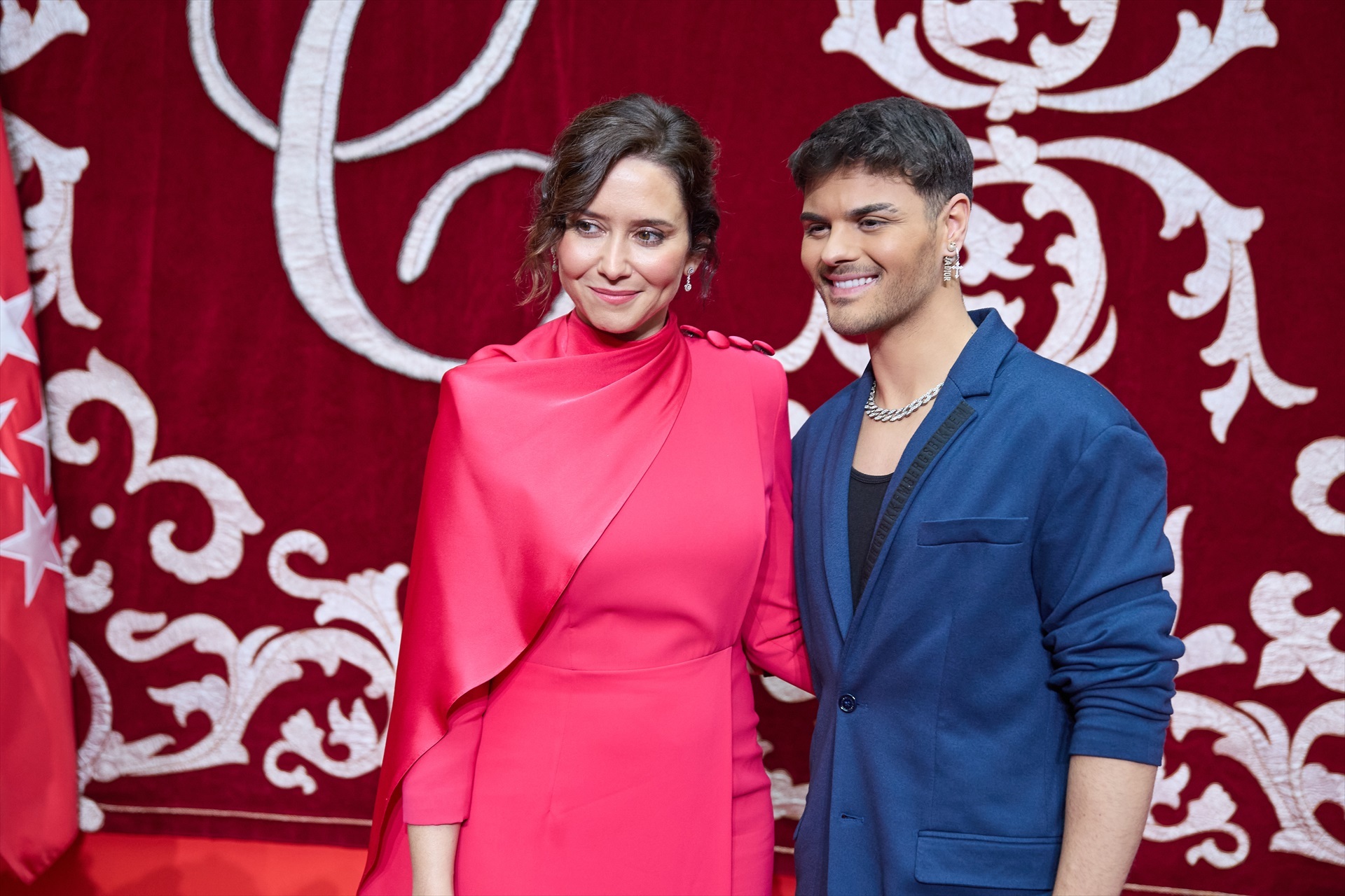 El cantante Abraham Mateo saluda a la presidenta tras su actuación.