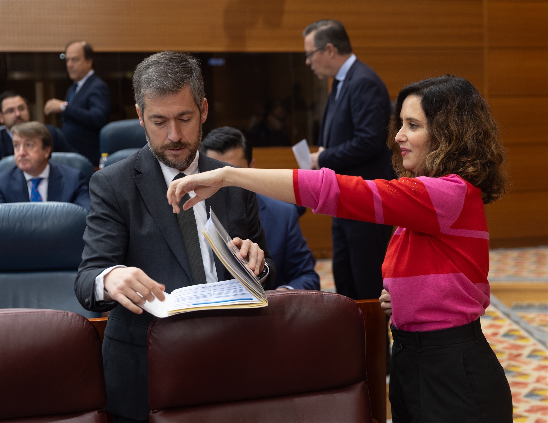 El de este jueves era el primer Pleno en la Asamblea de este nuevo periodo de sesiones y se producía tan solo unos días después de que se desatara la polémica entre el delegado del Gobierno en Madrid, Francisco Martín, y la presidenta madrileña, Isabel Díaz Ayuso, a cuenta de los inmigrantes acogidos por el Ejecutivo en el acuartelamiento Primo de Rivera de Alcalá de Henares.