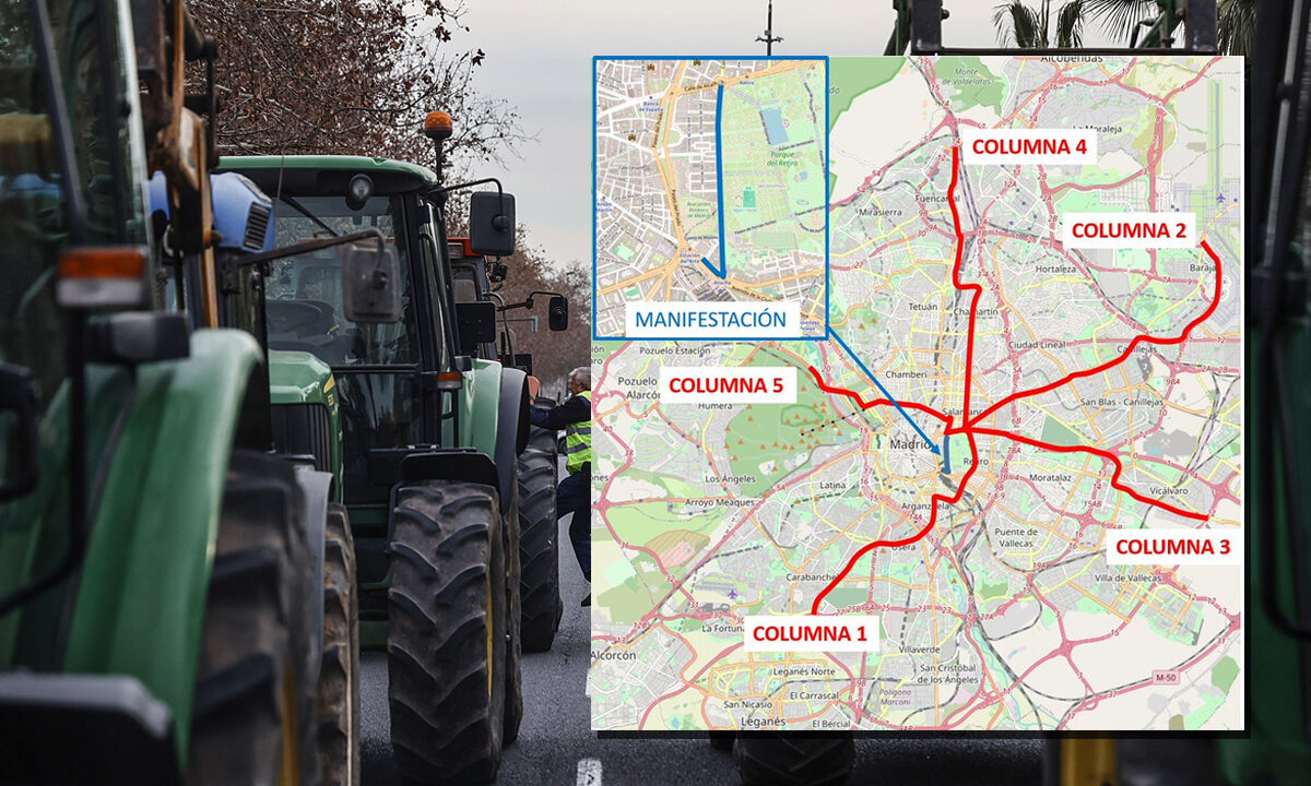 Las calles de la capital más afectadas, en función de la procedencia de los vehículos agrícolas, serán Vía Lusitana, calle de Marcelo Usera, puente de la Princesa, glorieta de Legazpi, paseo de las Delicias, calles de Bustamante y Comercio, avenida de Menéndez Pelayo, calles de O'Donnell y Alcalá y plaza de la Independencia.