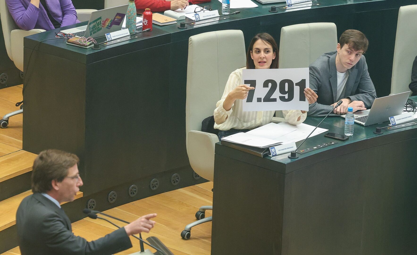 La discusión siguió unos minutos más hasta que Herrera interrumpió: "Salgamos de ese bucle". En paralelo, en el Pleno del Ayuntamiento de la capital, Rita Maestre salía a la tribuna para defender la pregunta registrada por Más Madrid. Lo hacía portando una pancarta. "7.291 personas fallecieron en las residencias de la Comunidad de Madrid sin asistencia médica y sin derivación hospitalaria". Y "siguen sin tener a día de hoy, por parte del PP, ni compasión, ni verdad ni ningún tipo de Justicia".