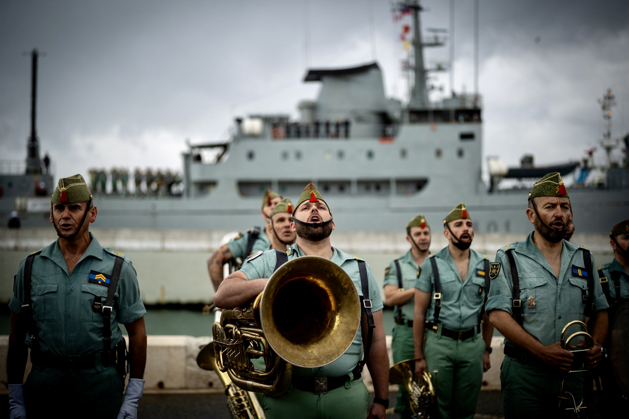 La reina Sofía presidió el desembarco de la Legión y fue la encargada de pasar revista a las tropas entre aplausos y vítores del público.