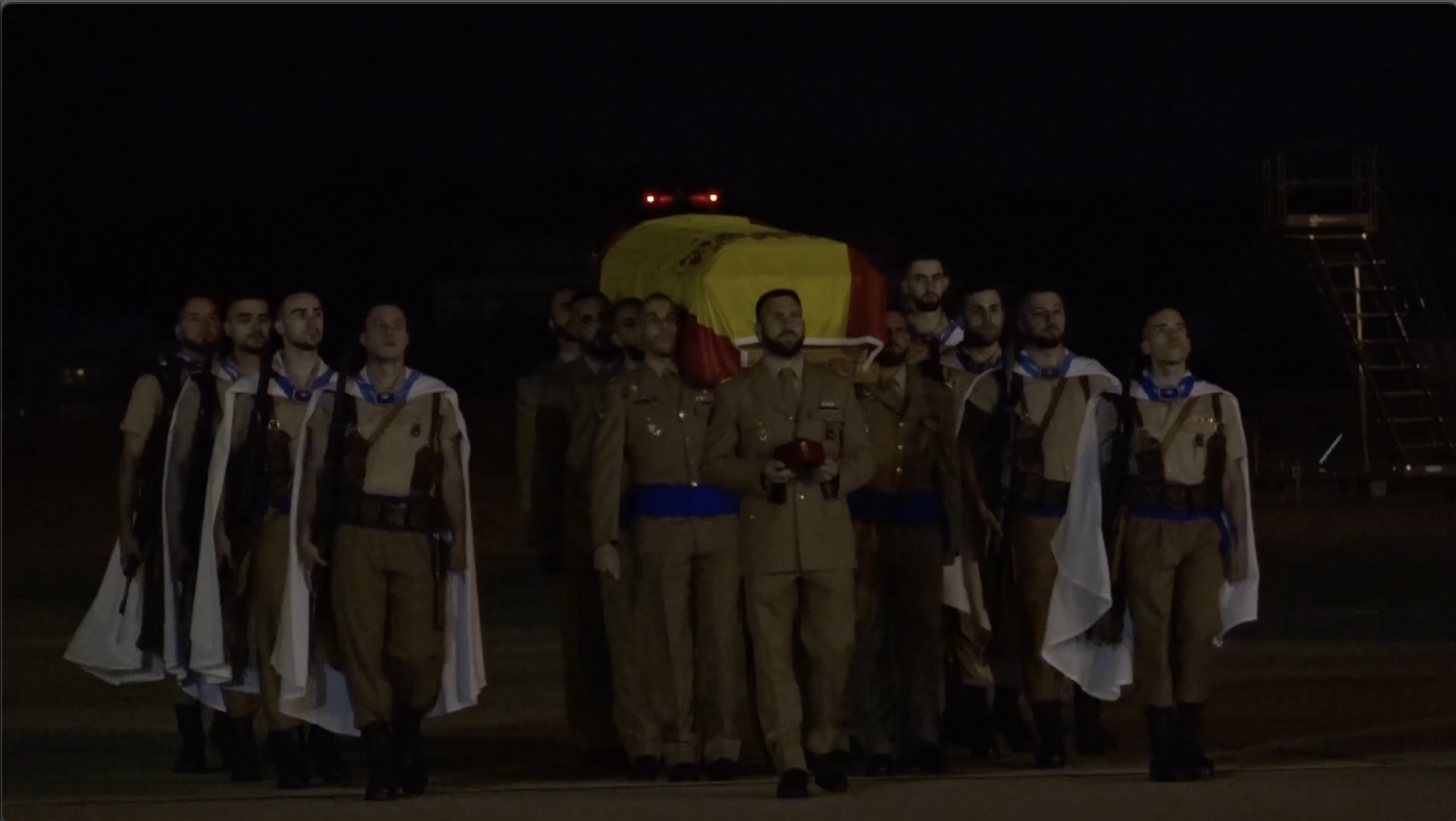 El cuerpo de Billye Germán Palacios, ha aterrizado en la base aérea de Torrejón de Ardoz pasadas las 22.30 horas. En el trayecto, realizado en un avión del 45 Grupo de Fuerzas Aéreas del Ejército del Aire y del Espacio enviado a Polonia por el Ministerio de Defensa, los restos fueron acompañados por una comisión del Grupo de Regulares 54 de la Comandancia General de Ceuta, al que pertenecía.