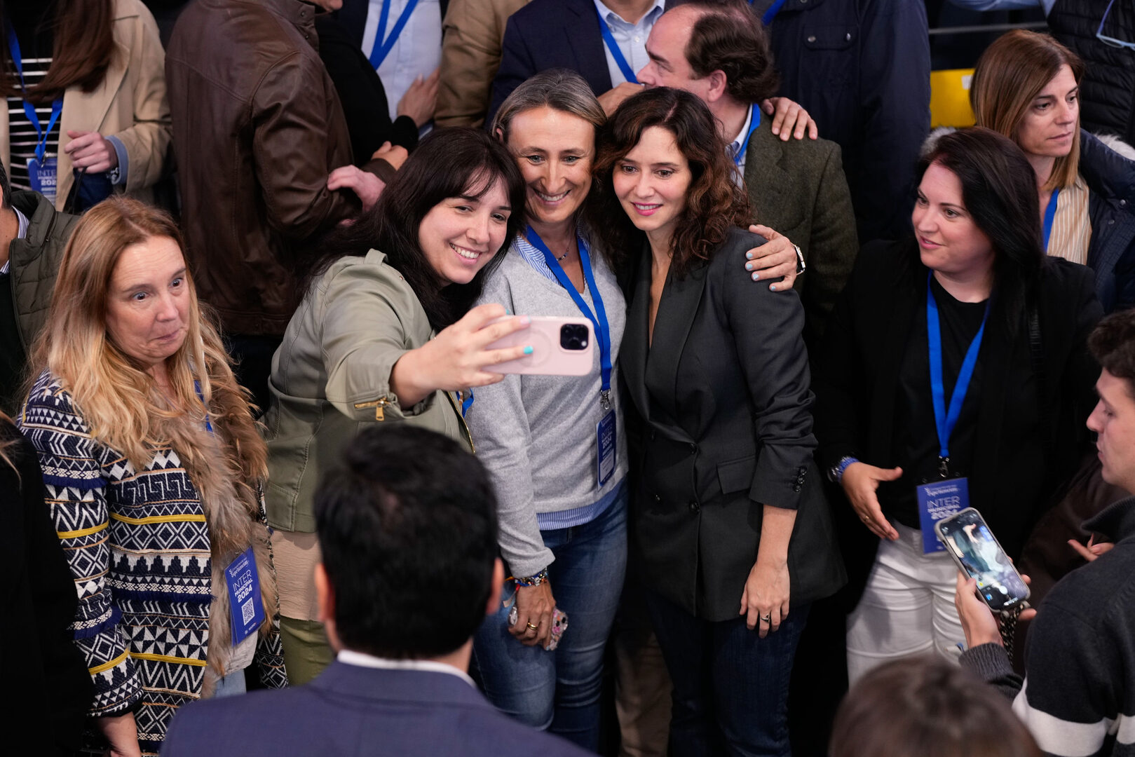 La presidenta madrileña acudió este sábado a la clausura I Intermunicipal del PP de Madrid, celebrada en el municipio de Las Rozas. El acto se celebró de forma paralela al insólito Comité Federal del PSOE, que en esta ocasión fue en abierto para que los miles de socialistas que acudieron a implorar a Pedro Sánchez que se quede – el presidente ha entrado de lleno en su tercer día de reflexión- pudieran seguirlo.
